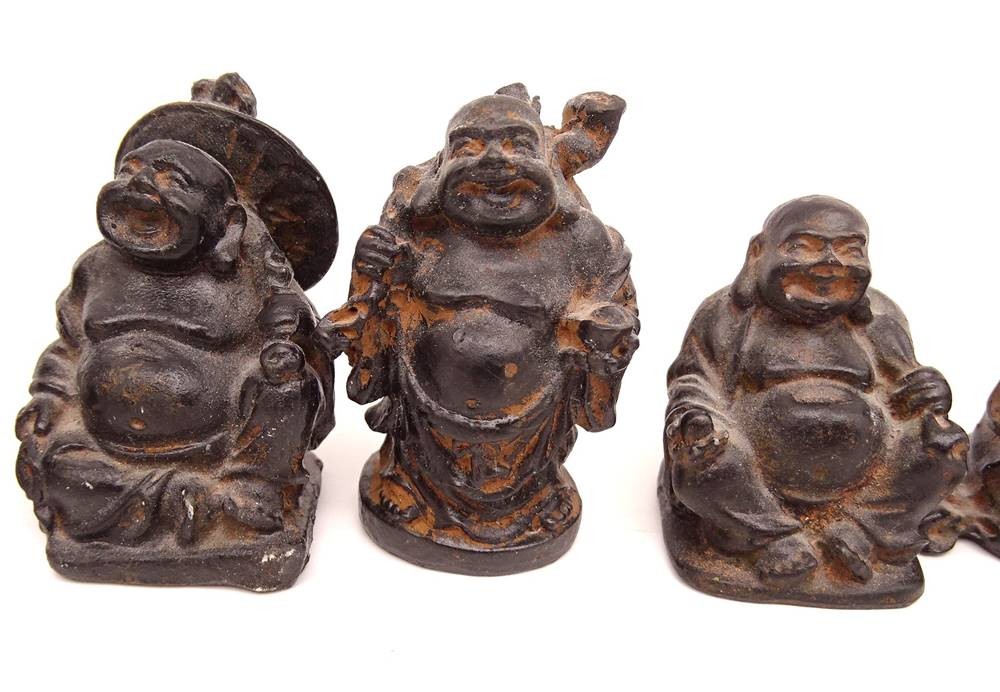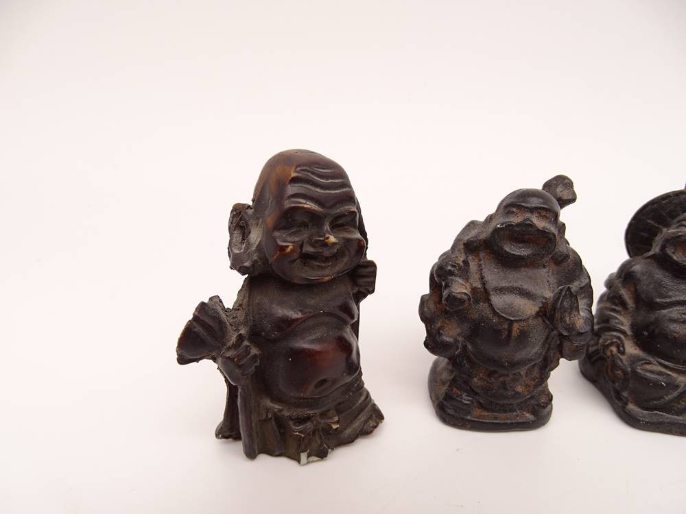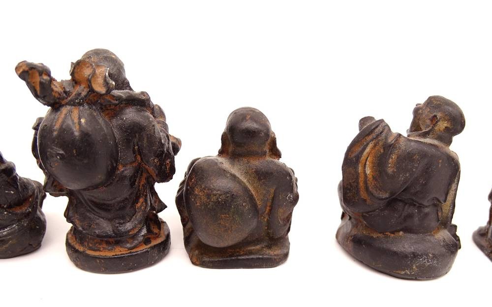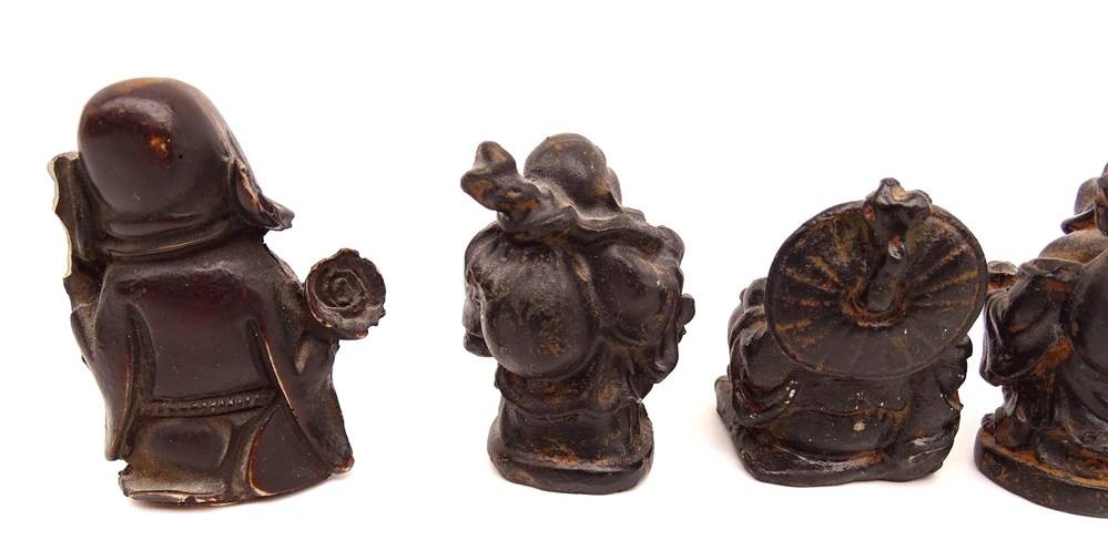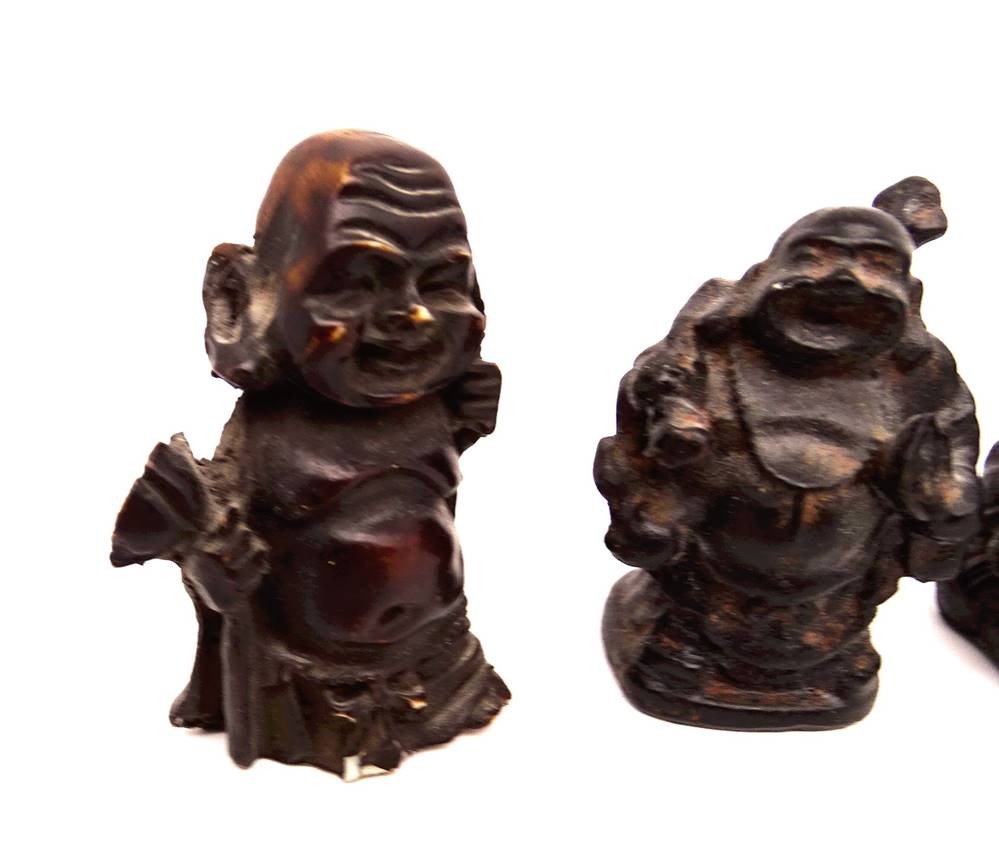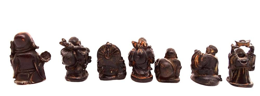 kleine Figurengruppe von 7 Buddhas aus Holz, teilweise leicht bestoßen, ca. H-5,5cm [1]