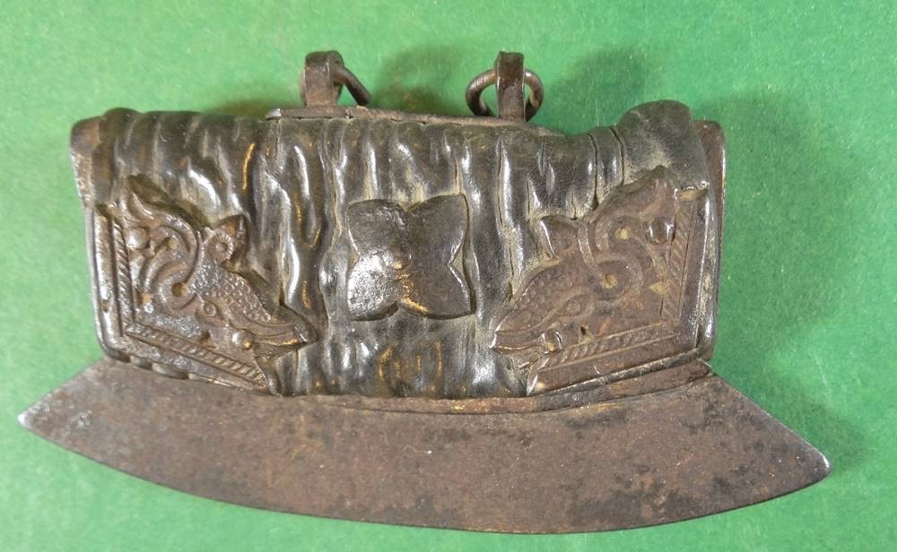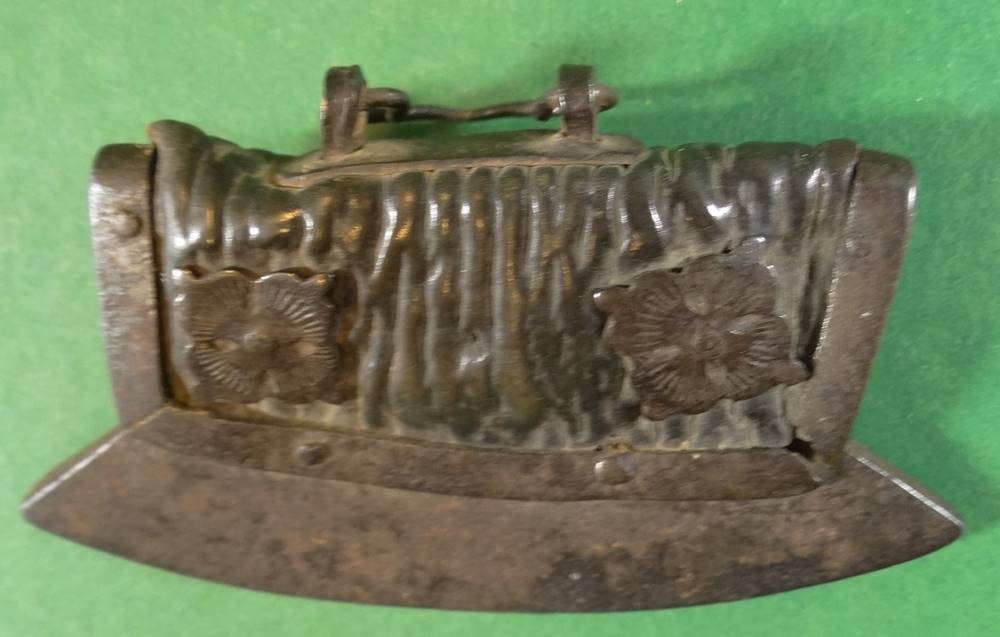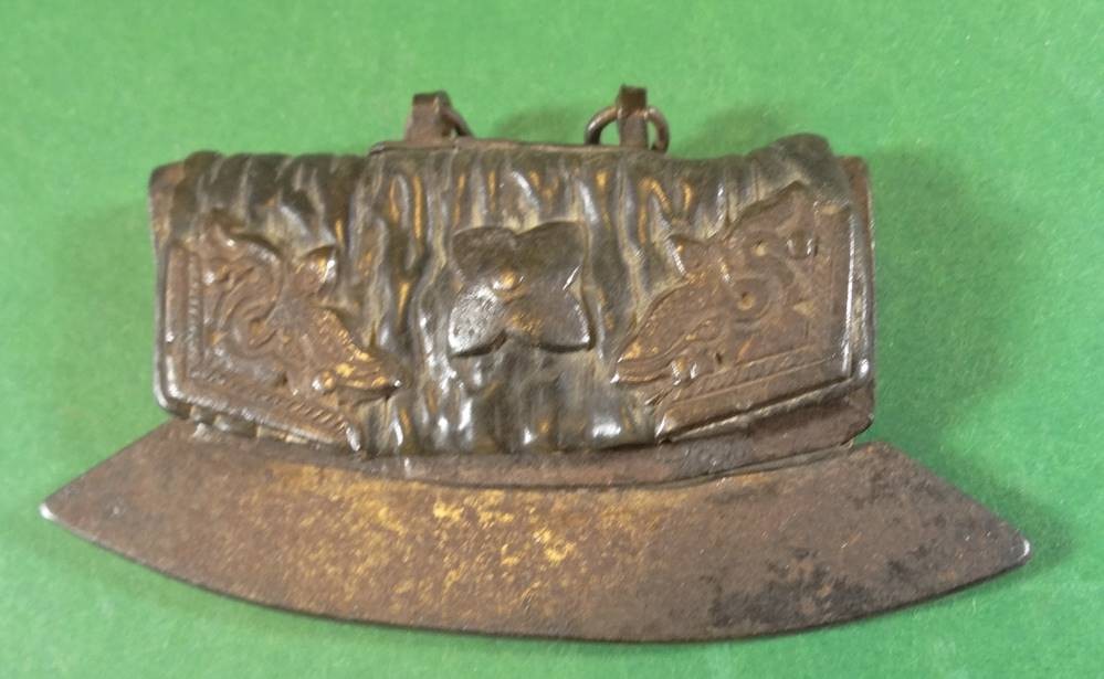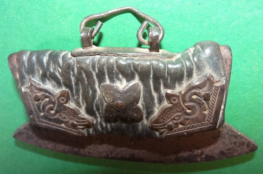 kleines "Wer weiss was?", Eisen mit Leder, kl. Tasche??, wohl China? Altersspuren [1]