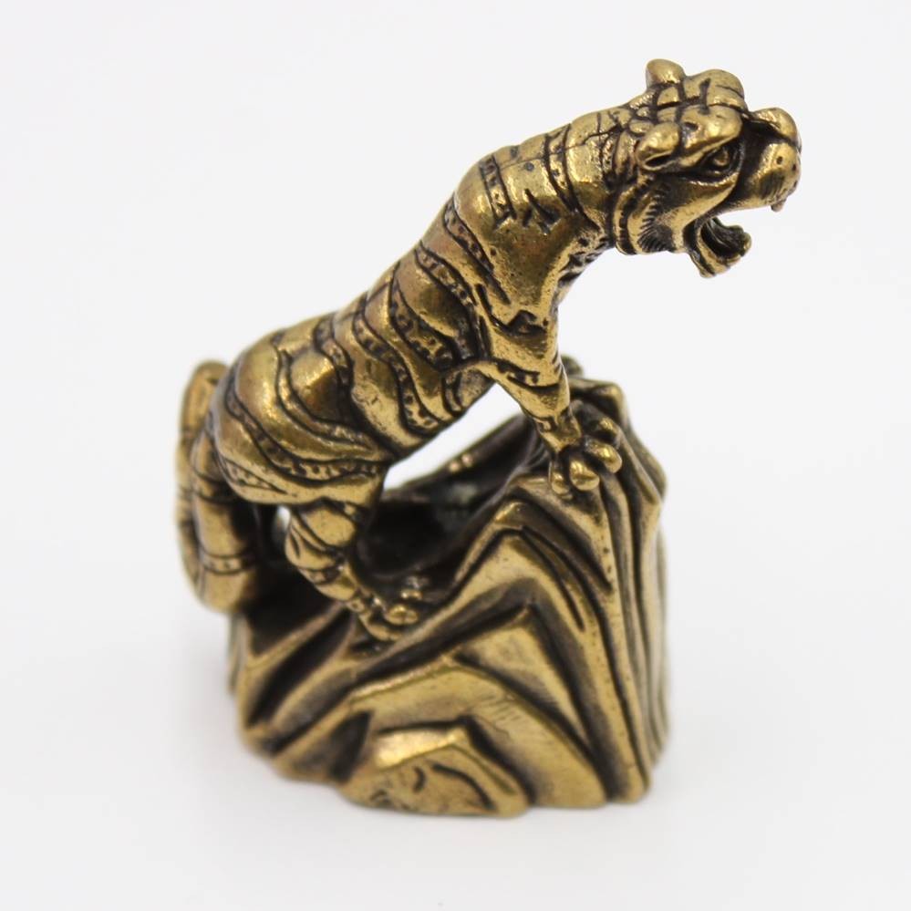 Messing-Figur, Tiger auf Fels, chin. beschriftet, ca. H-5cm [1]