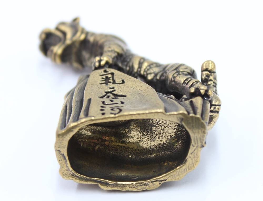 Messing-Figur, Tiger auf Fels, chin. beschriftet, ca. H-5cm