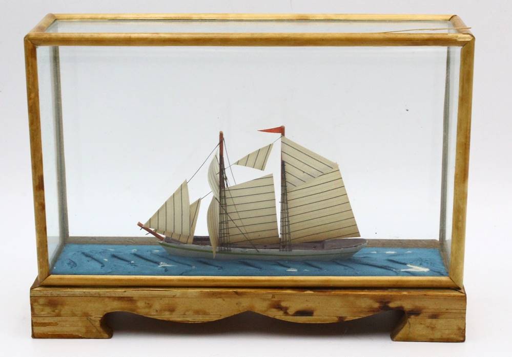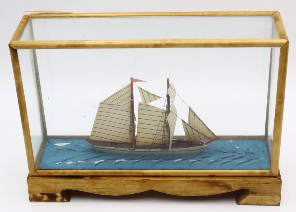 Modell Segelschiff in Tischvitrine, H-14 cm, 20x5 cm [1]