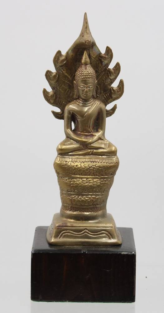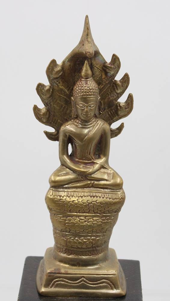 Naga-Buddha-Statue, wohl Bronze auf Holz, ca. H-36cm [1]