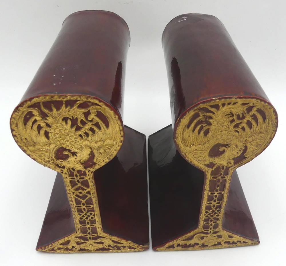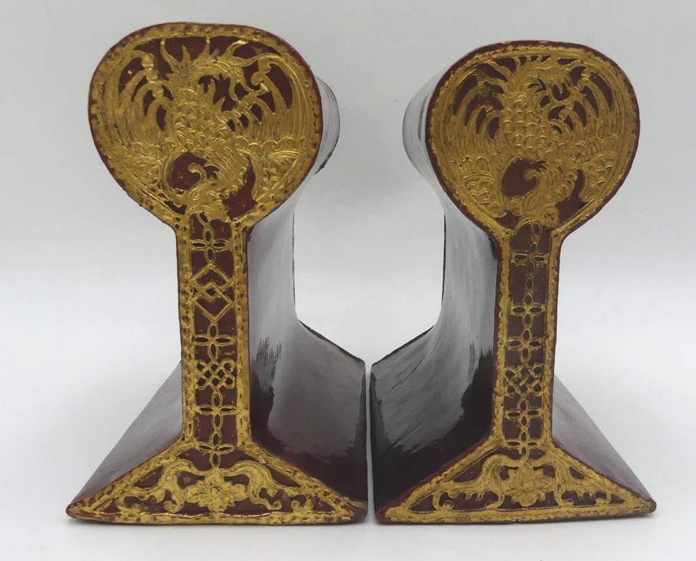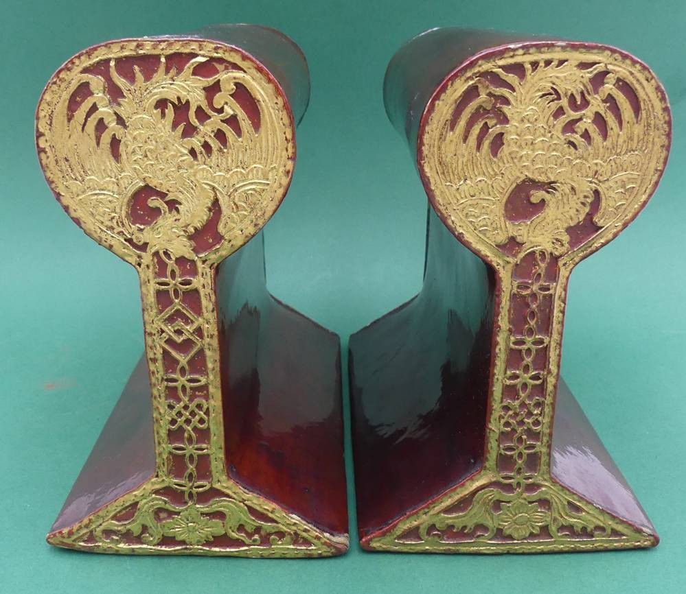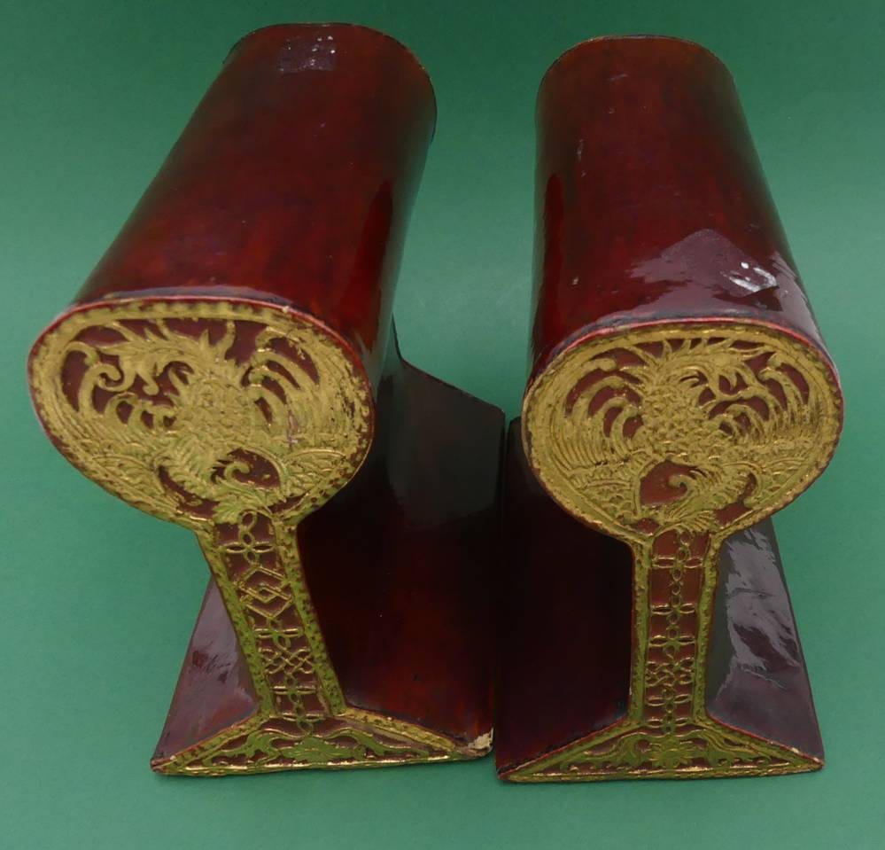 Paar chines. Kopfstützen, Rotlack, ein Ende mit Vergoldung, H-16 cm, B-16 cm [1]