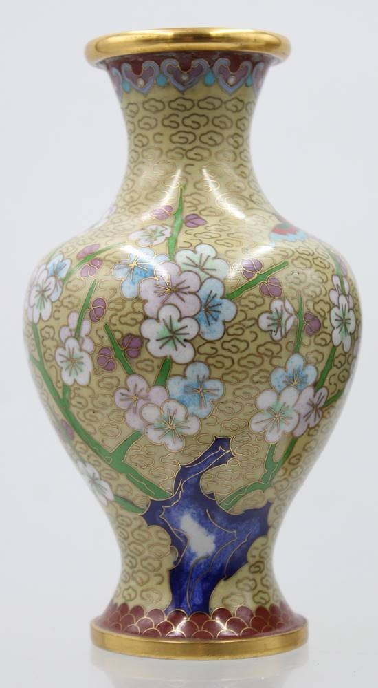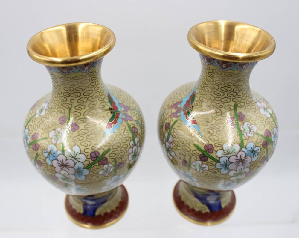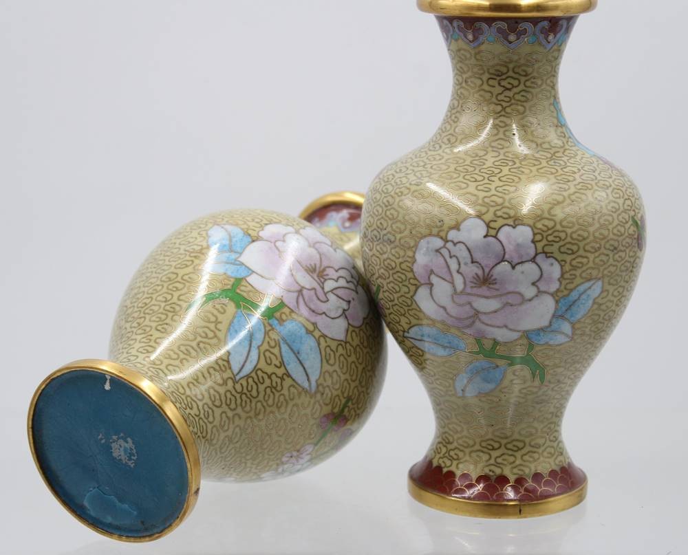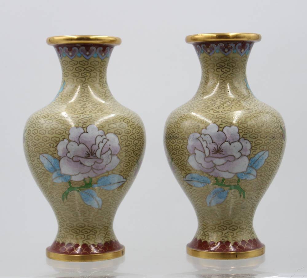 Paar Cloisonné-Vasen, China, florale Dekore, ca. H-18cm [1]