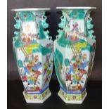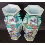 Paar hohe China-Vasen, bemalt, älter, H-44 cm