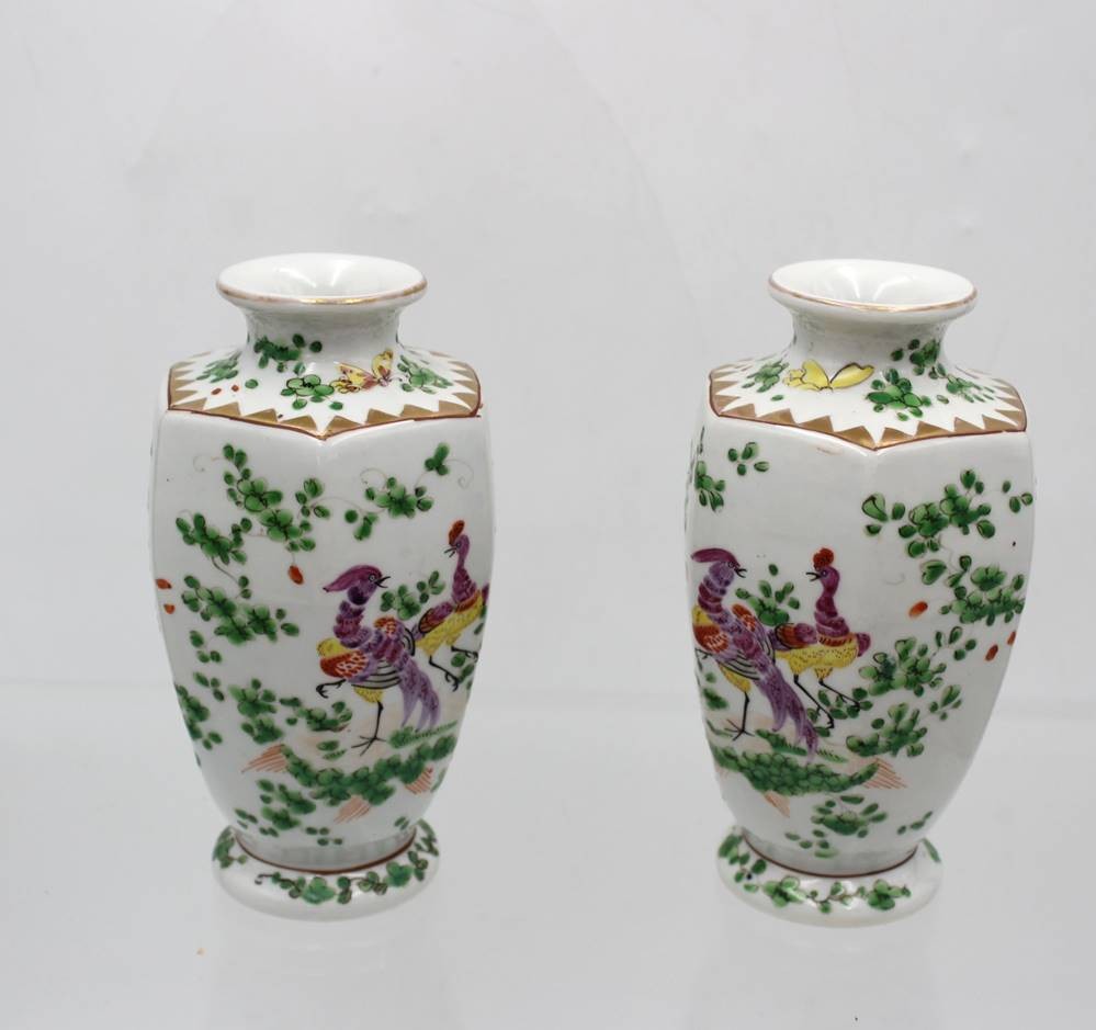 Paar kl. Vasem, Blumen u.-Vogelbemalung, Japan, ca. H-15cm [1]