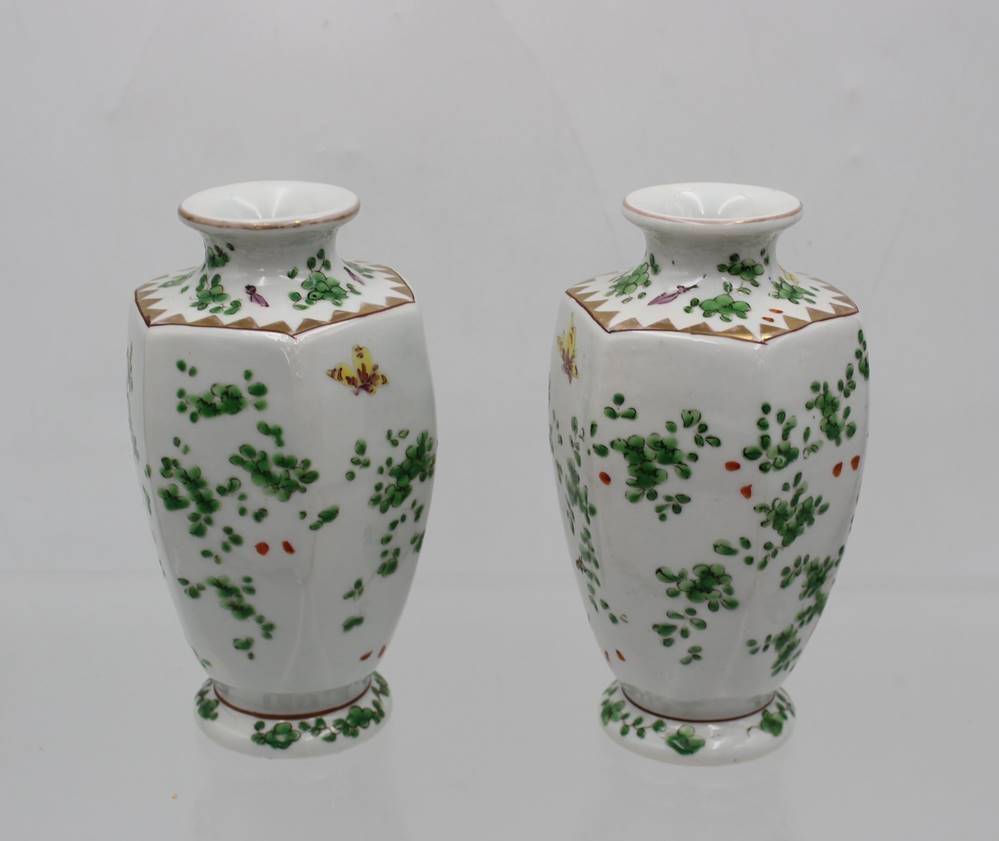 Paar kl. Vasem, Blumen u.-Vogelbemalung, Japan, ca. H-15cm