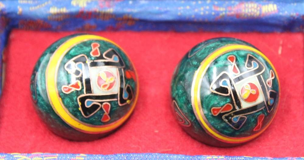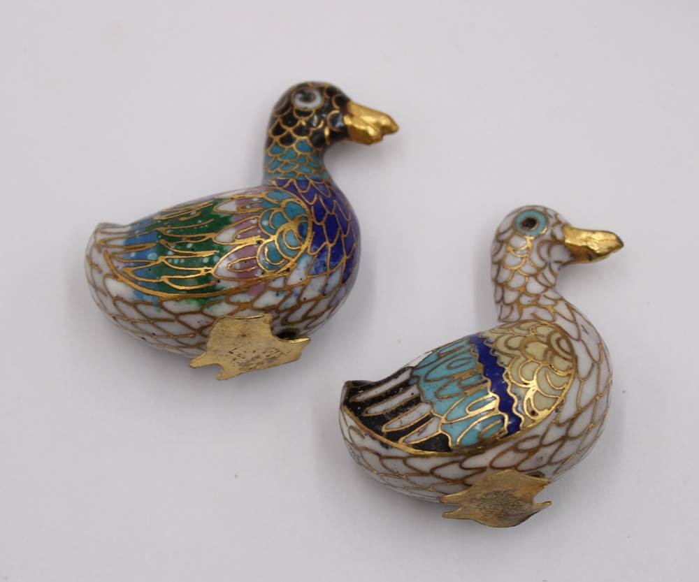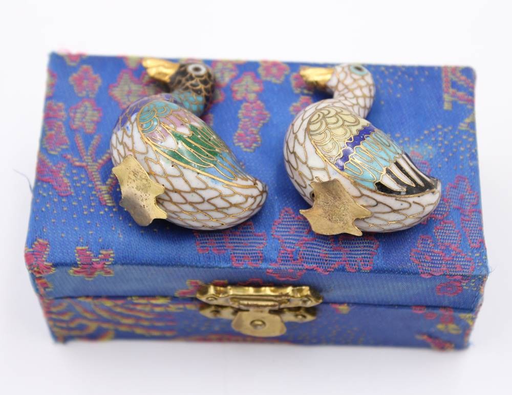 Paar Klangkugeln in Kasten sowie 2 kl. Cloisonné-Enten, China, Kasten ca. H-4cm B-10cm [1]