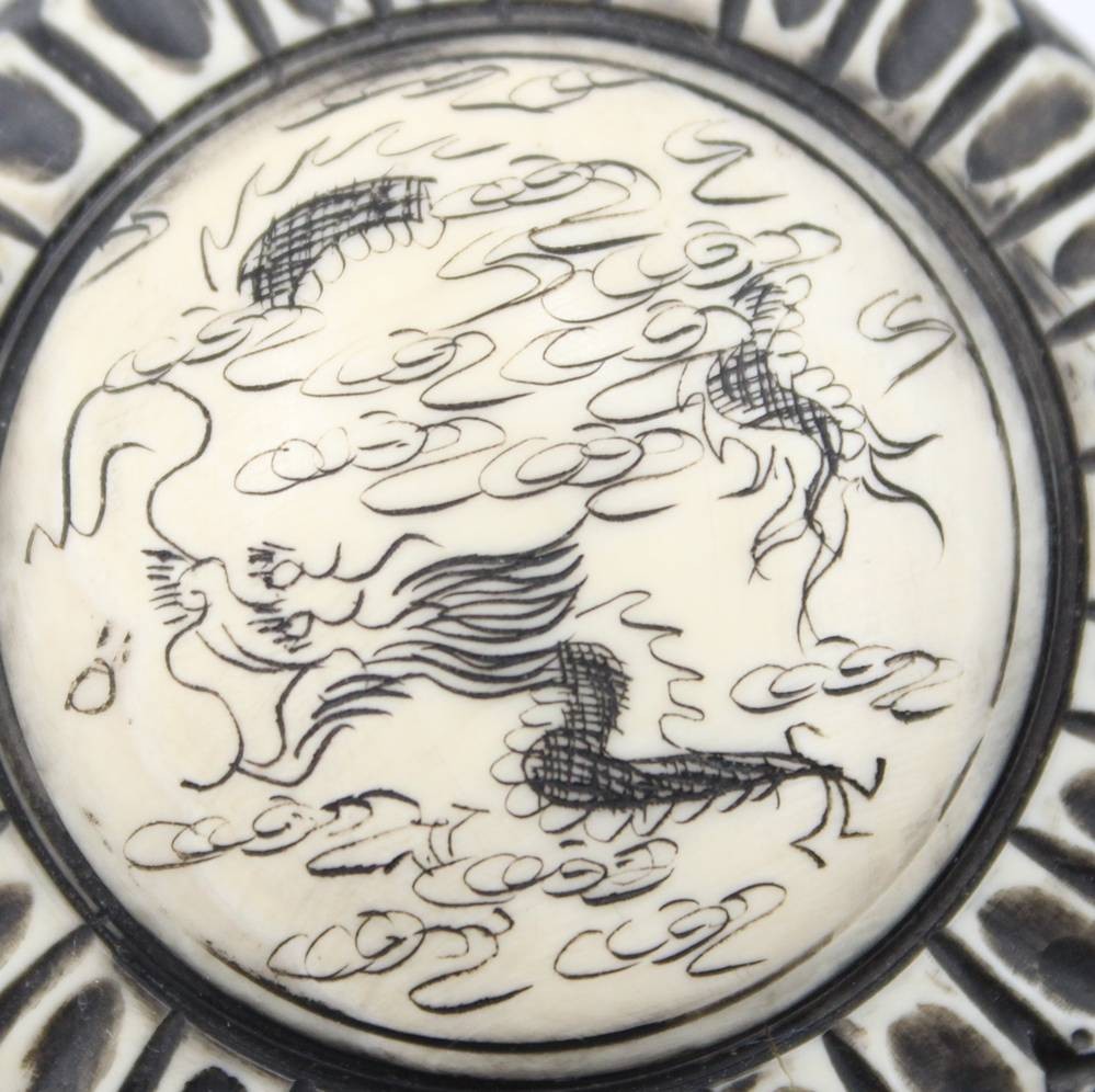 paar runde gravierte Dosen aus Bein, um 1900 , Japan, ca. H-3cm D-5,3cm [1]