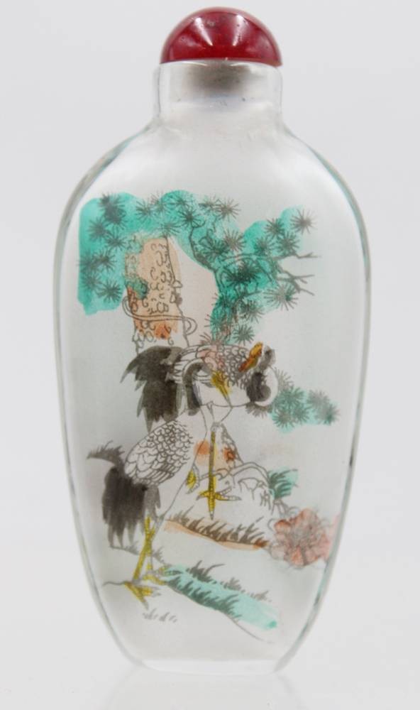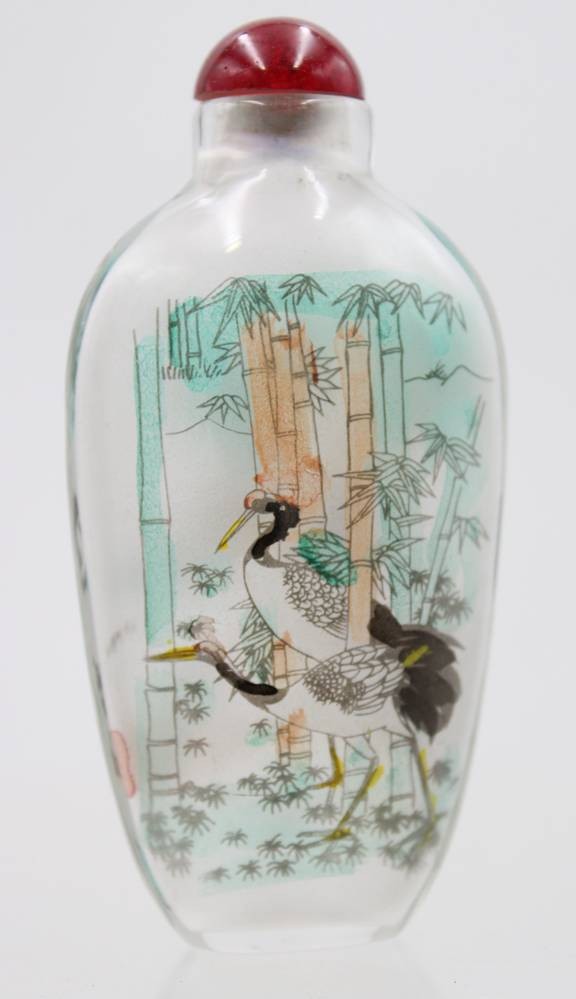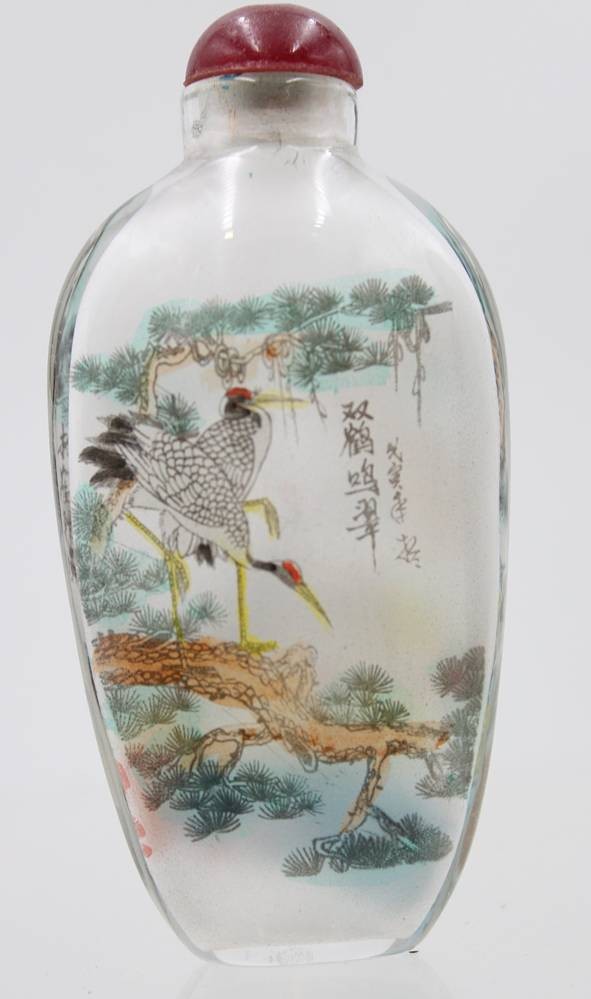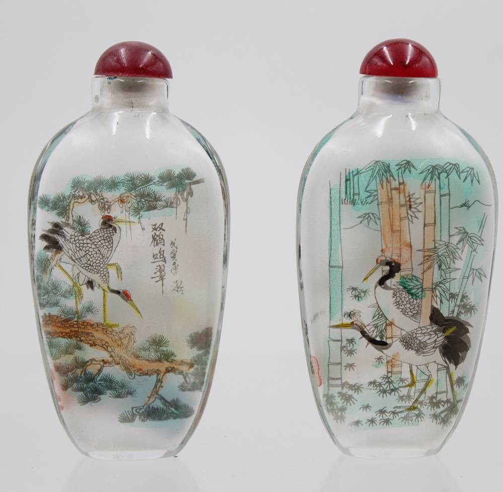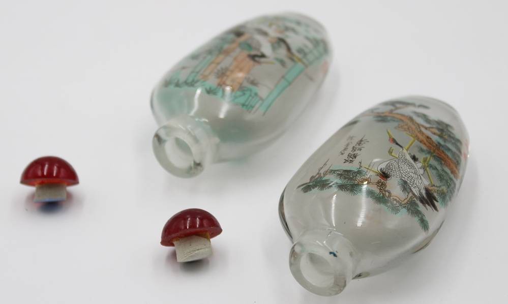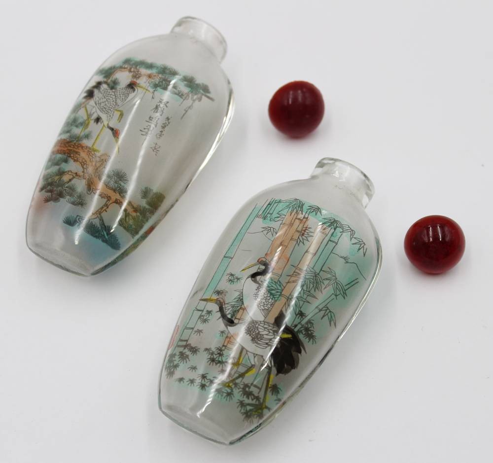 Paar Snuffbottles, China, Zwischenglasmalerei, ca. H-9,5cm [1]