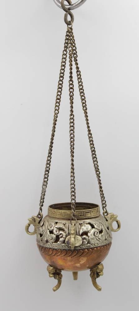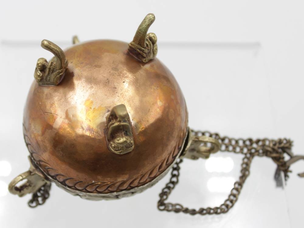 Räuchergefäss, wohl Asian, Kupfer/Messing, älter, ca. H-8cm , kompl. L-28cm. [1]