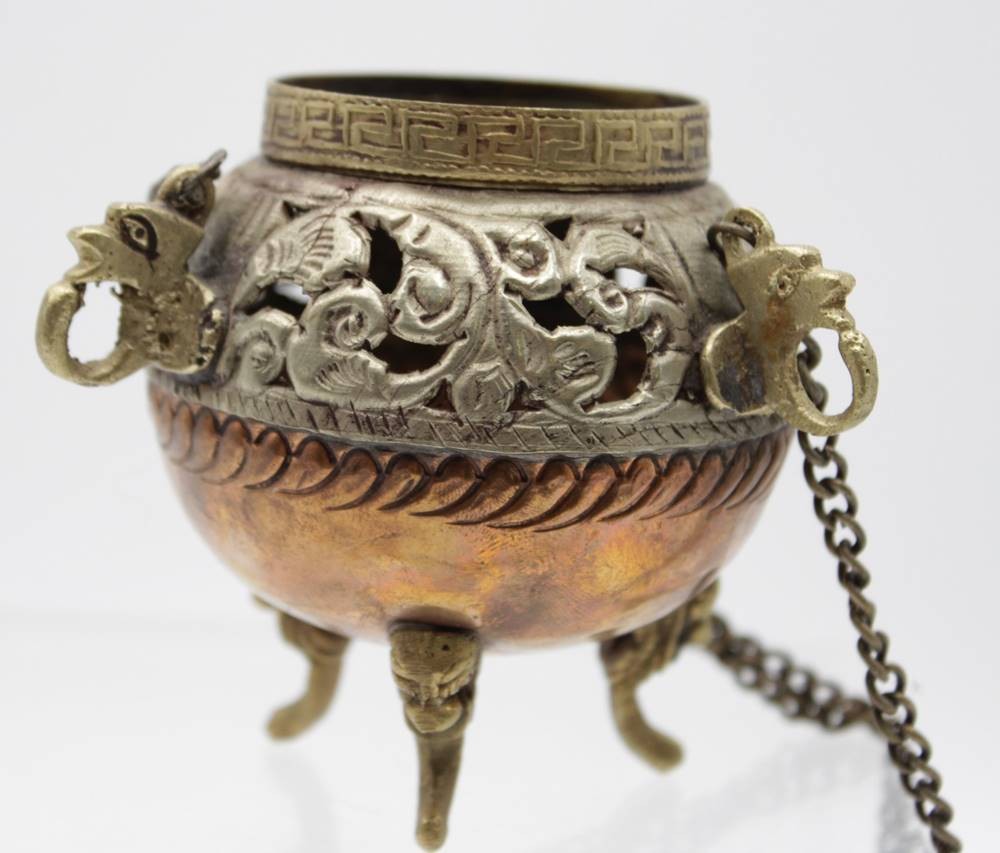 Räuchergefäss, wohl Asian, Kupfer/Messing, älter, ca. H-8cm , kompl. L-28cm.