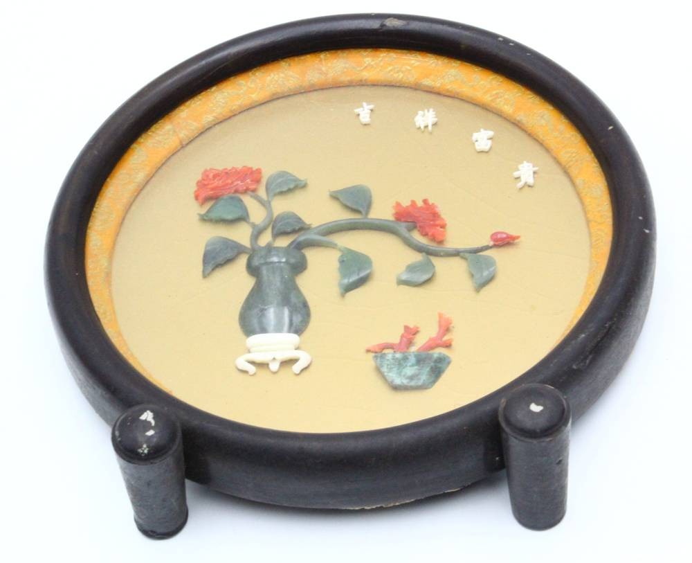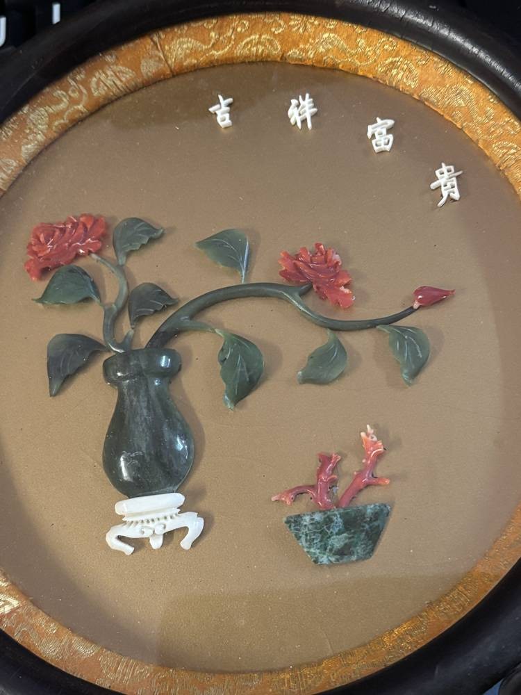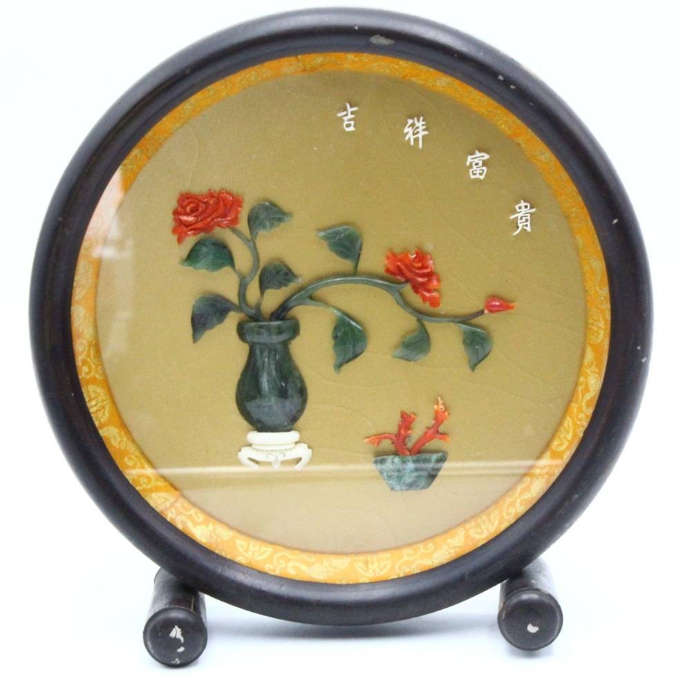 Schaubild aus Jade und Koralle, Holzrahmen, H-19 cm [1]