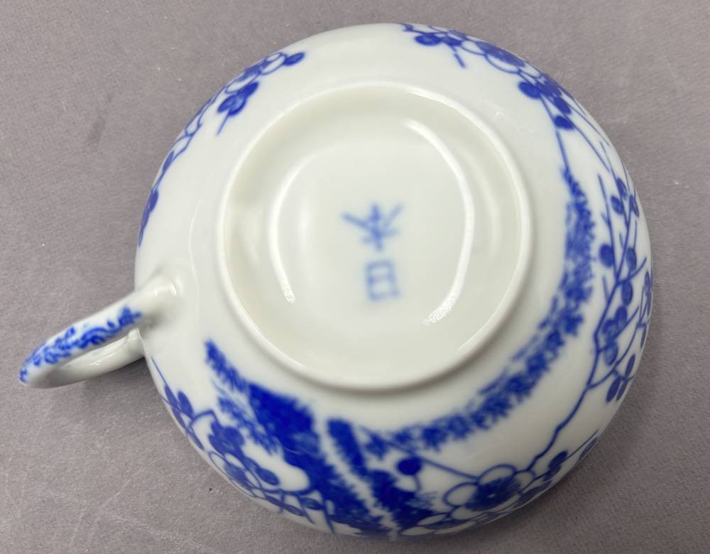 Teeservice, wohl Japan, Eierschalenporzellan, blaues Dekor, 15 Teile [1]
