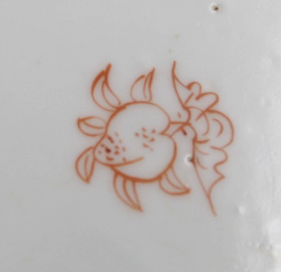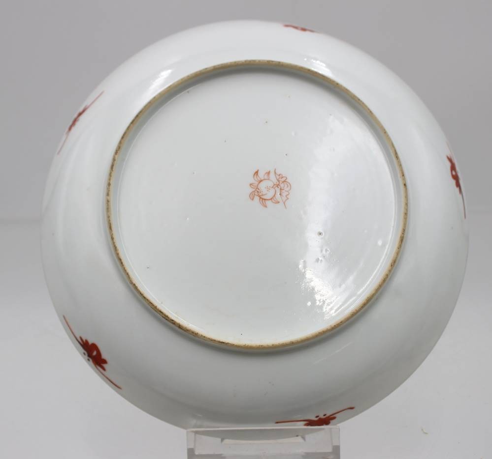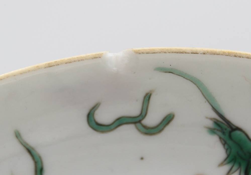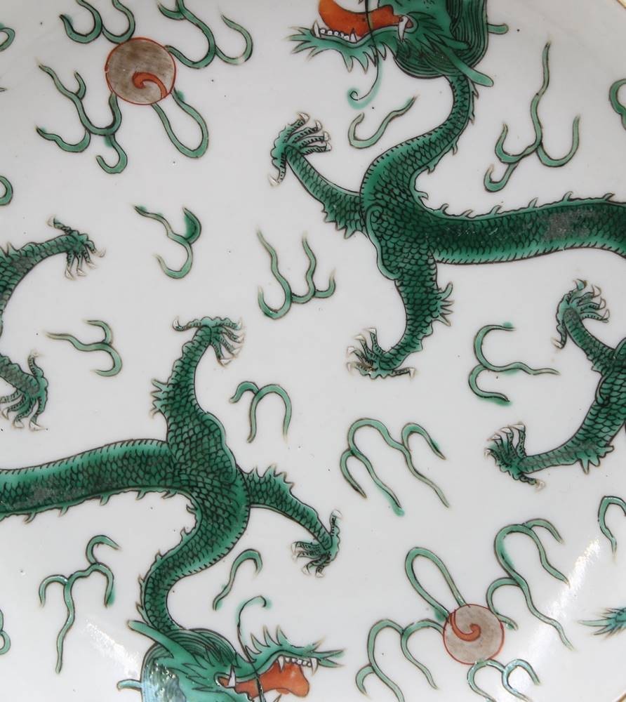 Teller, China, 2 grüne Drachen, verso gemarkt, Rand mit Chip, ca. D-18cm [1]