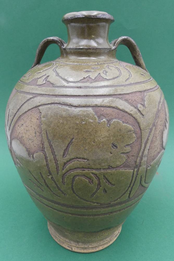 Terrakotta Vase, China, teilglasiert, H-23 cm, Altersspuren [1]