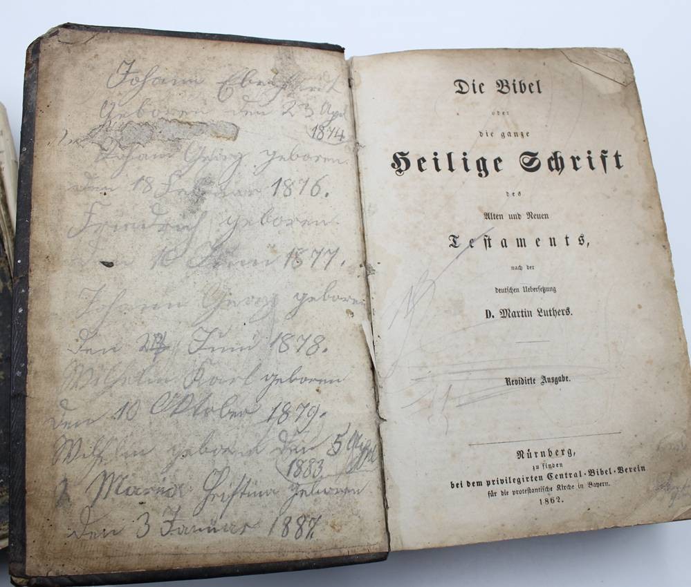 2x div. alte Bibeln, je um 1860, starke Alters-u. Gebrauchsspuren [1]