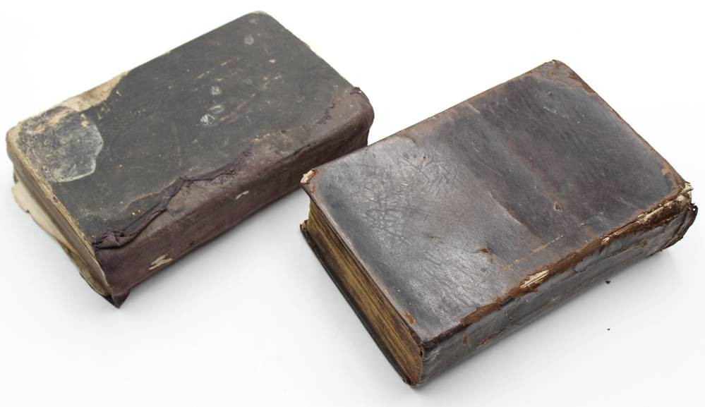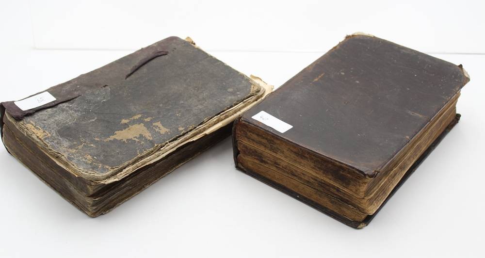 Losnummer 3011 - 2x div. alte Bibeln, je um 1860, starke Alters-u. Gebrauchsspuren