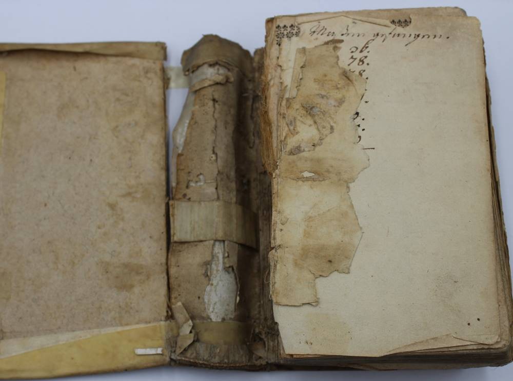 altes Buch wohl um 1750, Thema?, starke Alters-u. Gebrauchsspuren [1]