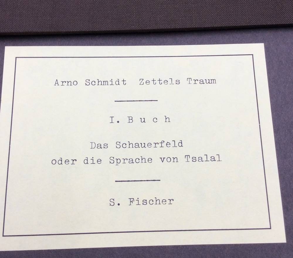 Arno Schmidt "Zettels Traum." Studienausgabe in 8 Heften. 1963 bis 1969, in der orig. Leinen-Klappcassette, Fischer Verlag, wohl 1977, neuwertig, 45x33,5 cm [1]