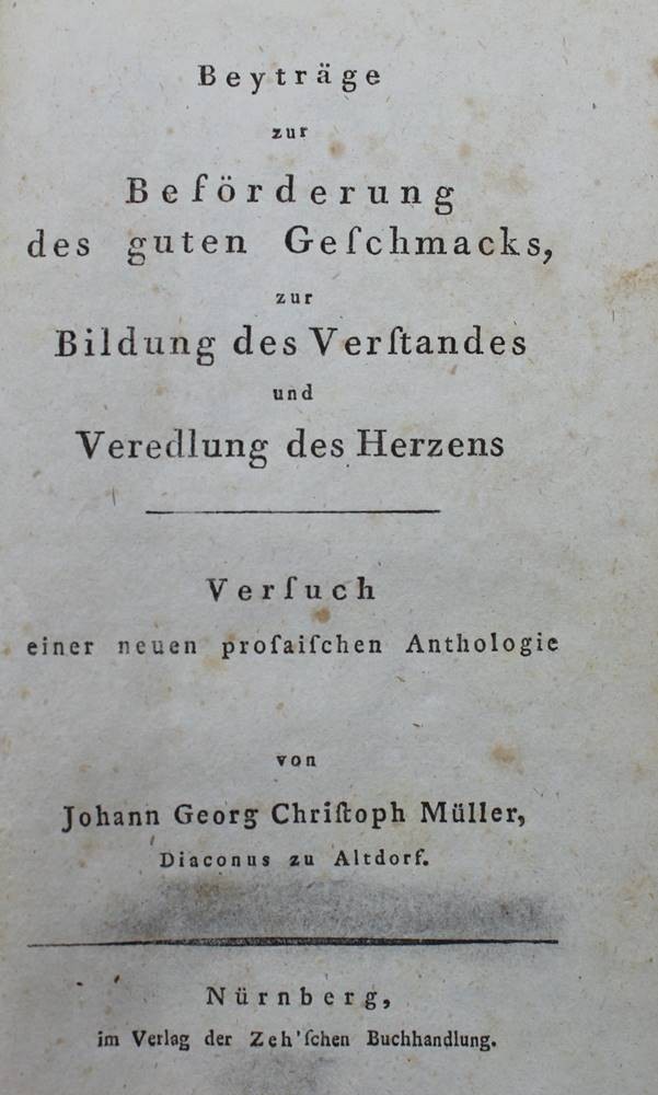 Beyträge zur Beförderung des guten Geschmacks, zur Bildung des Verstandes und Veredlung des Herzens, Johann Georg Christoph Müller, um 1780