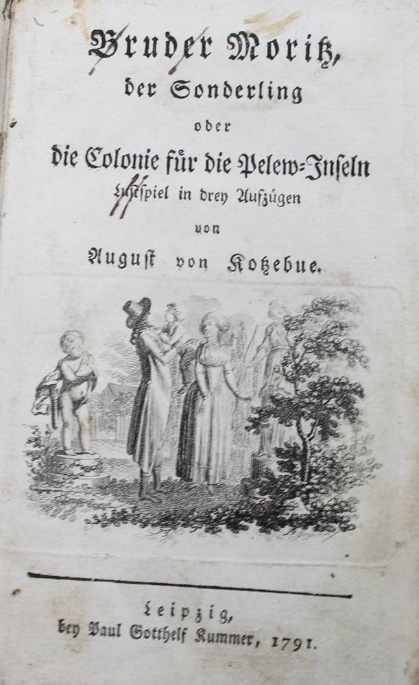 Bruder Moritz der Sonderling oder die Kolonie für die Pelew-Inseln Lustspiel in drey Aufzügen, Kotzebue, August von, 1791, Altersspuren [1]