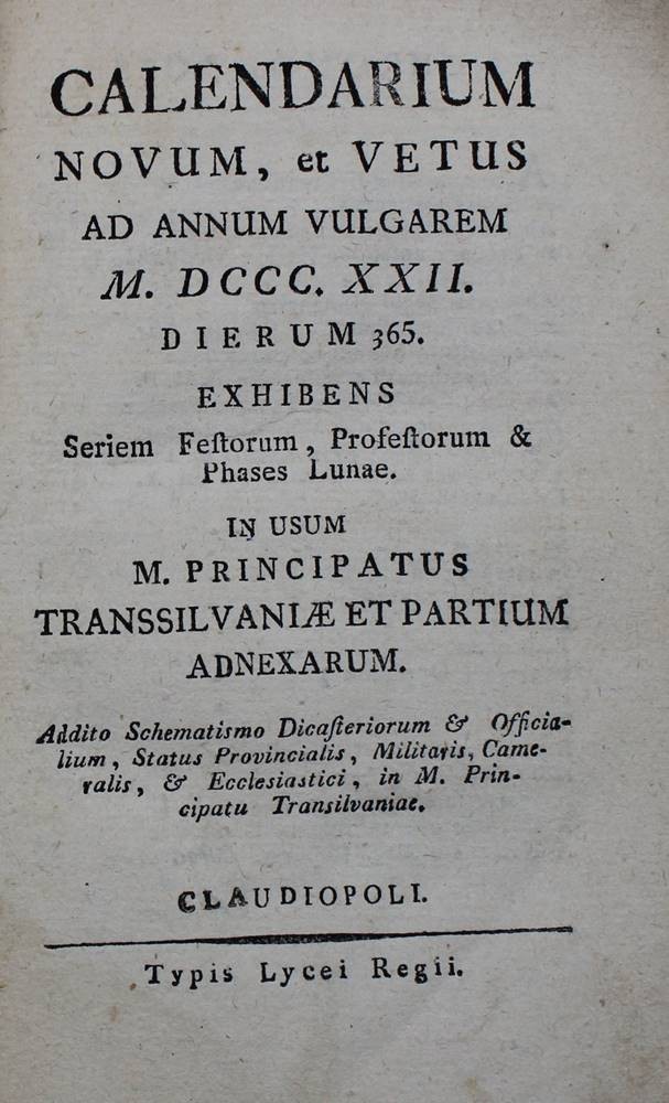 Calendarium Novum et Vetus (Neuer und Alter Kalender) für das Jahr 1822, Paperback, Alters-u. Gebrauchsspuren [1]