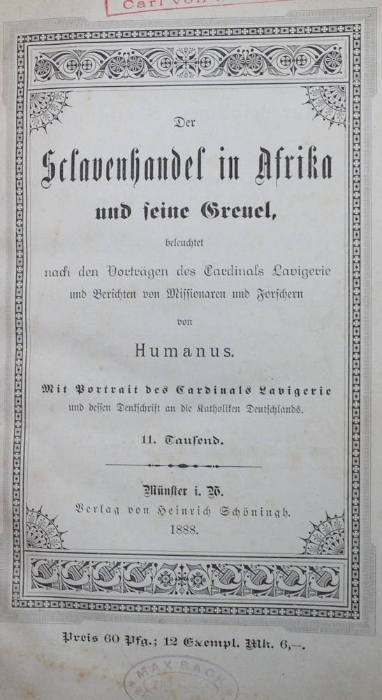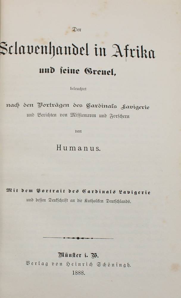 Der Sklavenhandel in Afrika und seine Greuel, Münster 1888 [1]