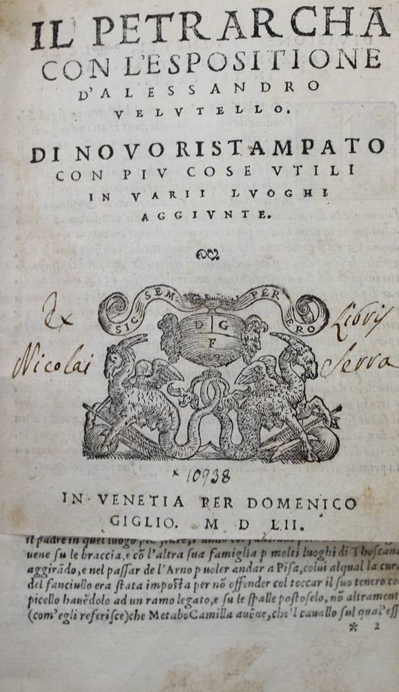 Francesco Petrarcas "Il Petrarcha con l'espositione d'Alessandro Vellutello,,,,", 1552, Alters-u. Gebrauchsspuren