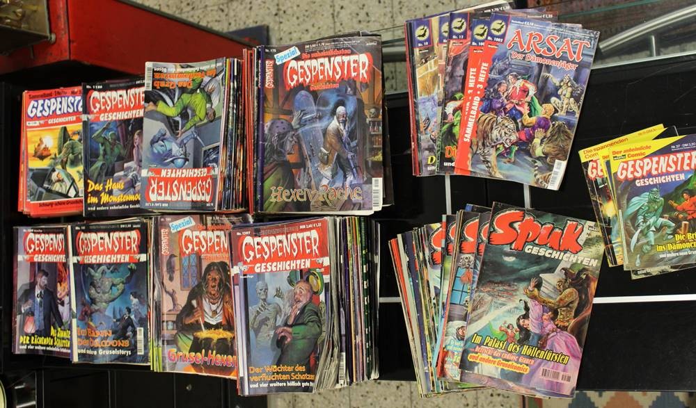 gr. Konvolut div. Ausgaben "Gespenster Geschichten" sowie einige "Spuk Geschichten" u. "Arsat", wohl 80er Jahre, einige Alters-u. Gebrauchsspuren, wohl über 400 Ausgaben [1]