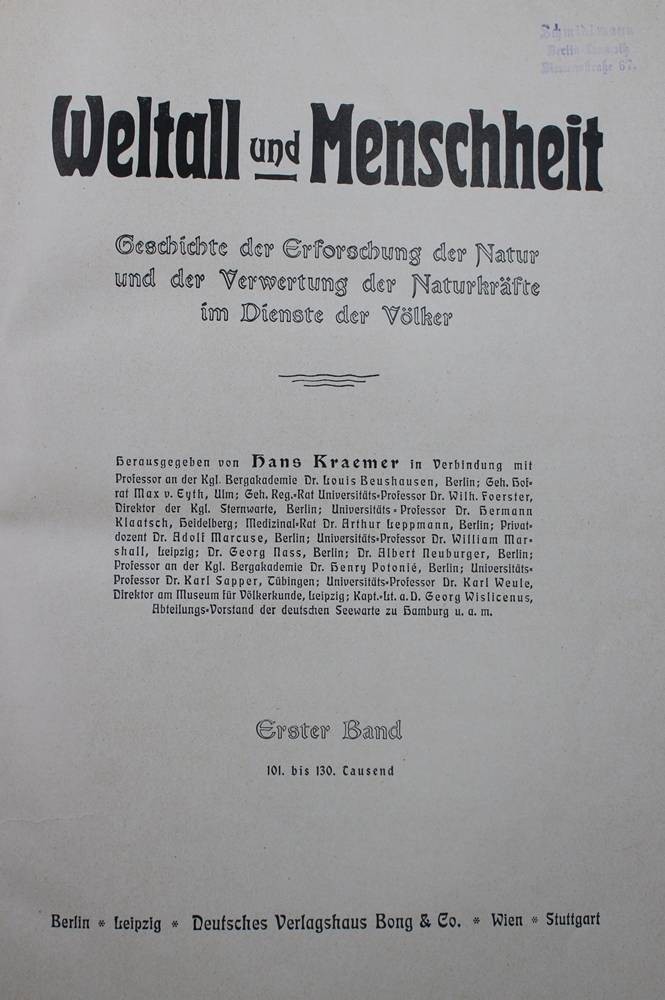 Hans Kraemer, Weltall und Menschheit, 1. Band, um 1910, Gebrauchsspuren [1]