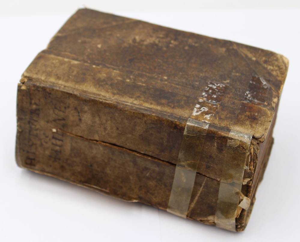 Johann Hübner,Kurze Fragen aus der politischen Historia bis zum Ausgange des siebenzehenden Seculi continuiret und mit einer nützlichen Einleitung vor die Anfänger auch vollständigem Register vermehret. 1. Theil, 1749, starke Altersspuren [1]