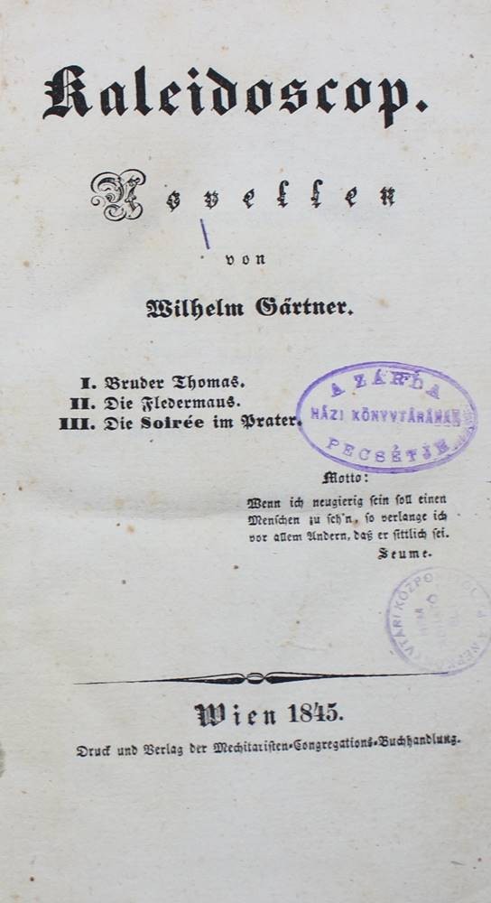 Kaleidoskop - Novellen von Wilhelm Gärtner, Wien 1845 [1]