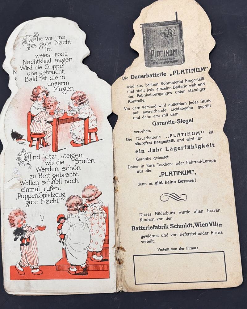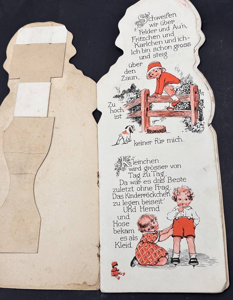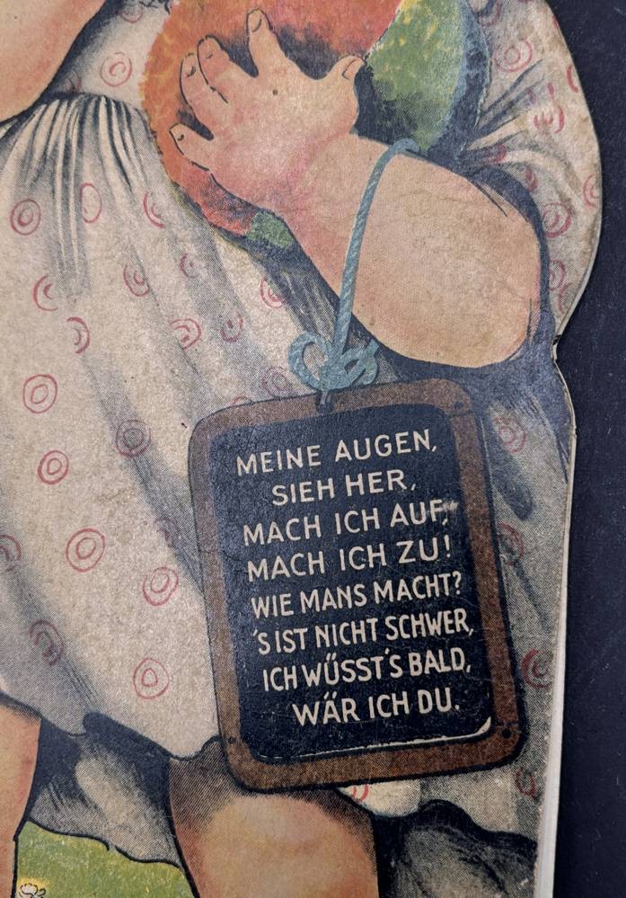 Kinderheftchen, Umriss-Bilderbuch mit beweglichen Augen, innen 3 Blatt, 6Seiten, und vorne-hinten Umschlag, Alters-und Gebrauchsspuren, 30x12 cm [1]