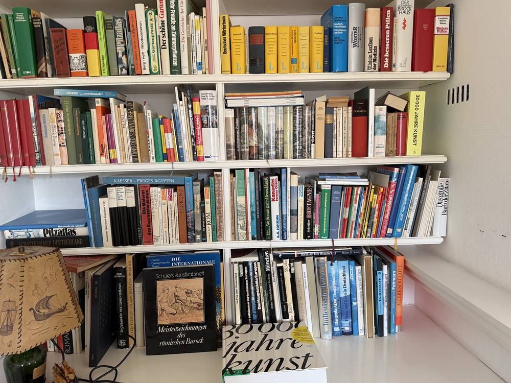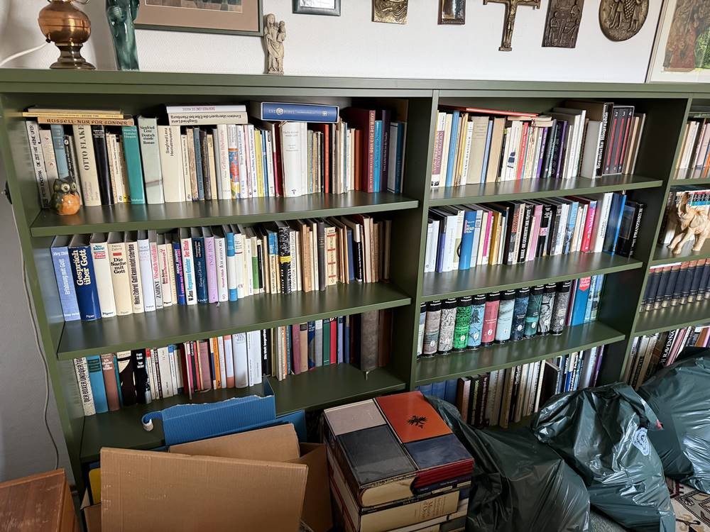 komplette Bibliothek eines Pastors, ca. 40-50 Karton, fast ausschliesslich Sach- und Fachbücher, viel kirchliches, aber auch Kunst, Natur wie Pilzbuch z.B. etc., viele Reisebücher-Bildbände, alte Gebetsbücher und Bibeln, nicht sortiert oder überprüft, nicht alles abgebildet.