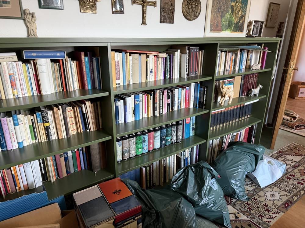 komplette Bibliothek eines Pastors, ca. 40-50 Karton, fast ausschliesslich Sach- und Fachbücher, viel kirchliches, aber auch Kunst, Natur wie Pilzbuch z.B. etc., viele Reisebücher-Bildbände, alte Gebetsbücher und Bibeln, nicht sortiert oder überprüft, nicht alles abgebildet. [1]
