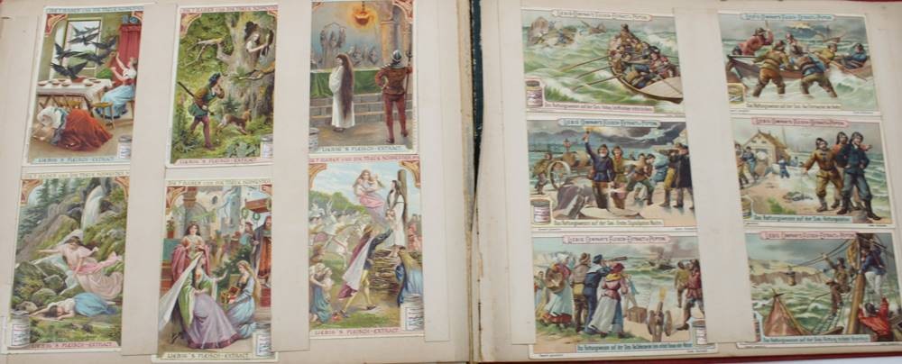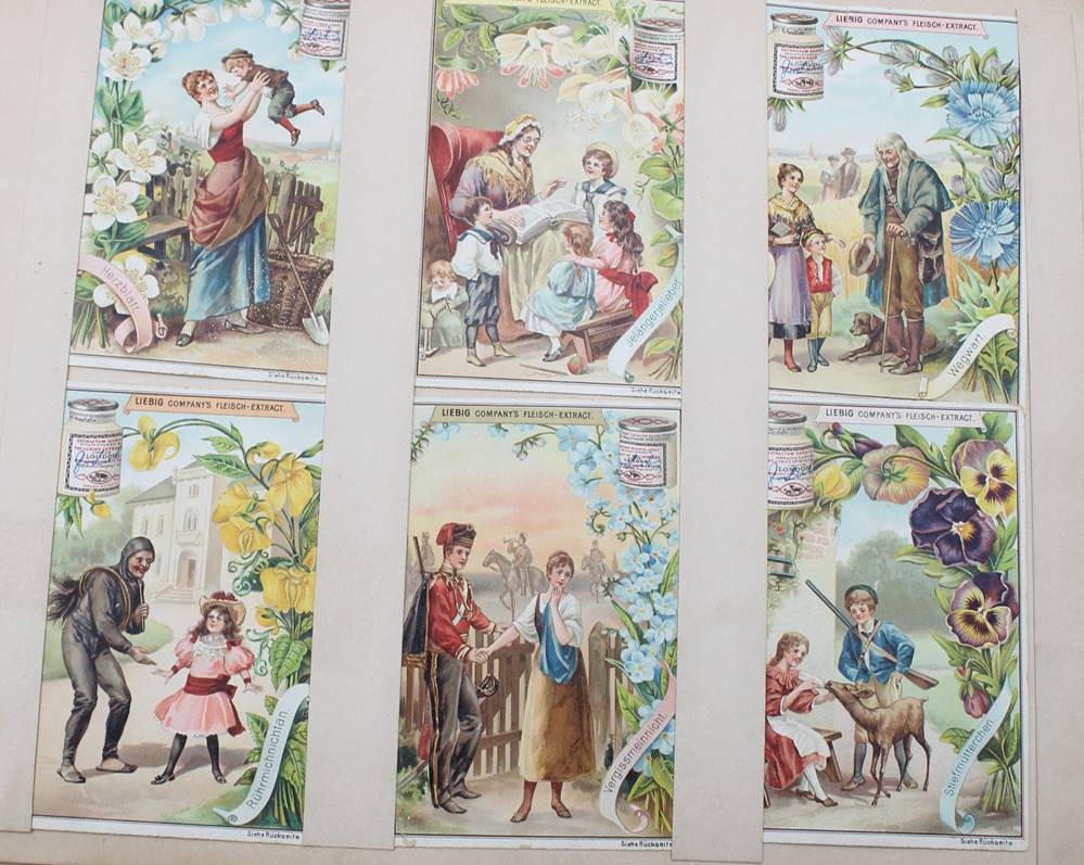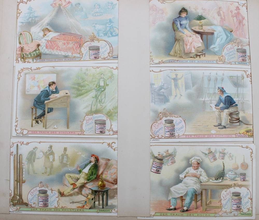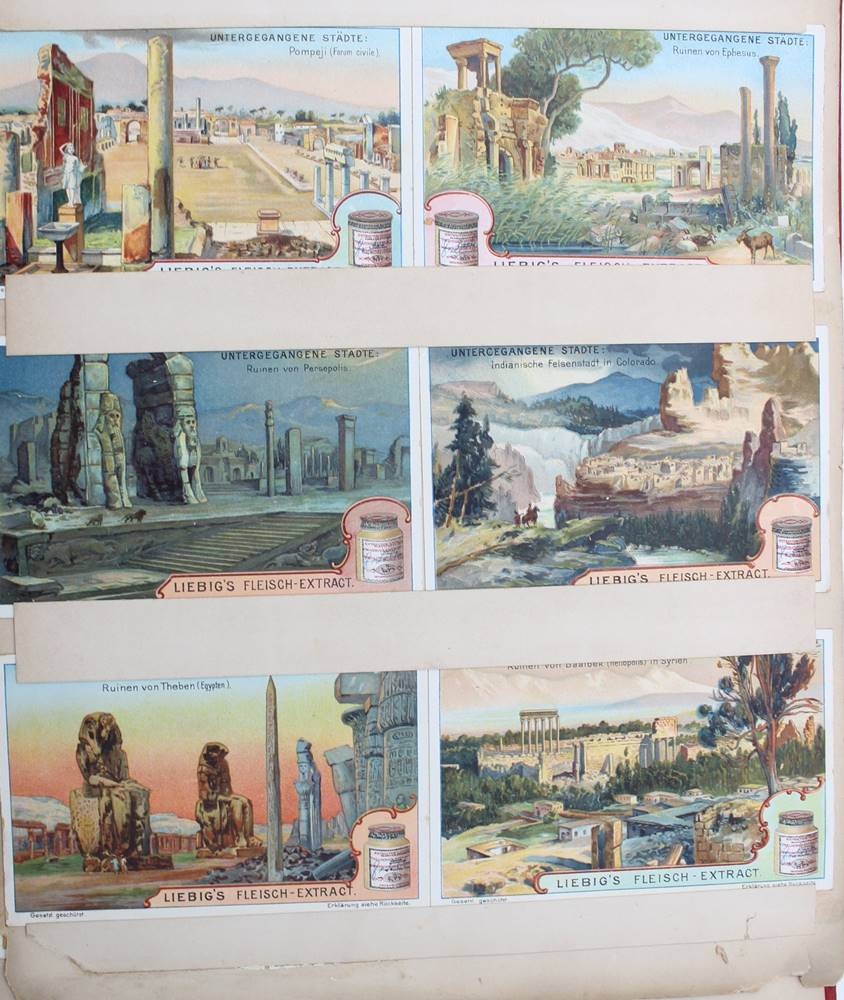 Liebig-Sammelalbum, 19. Jhd., diverse Serien, u.a. Denkmäler, Das Salz, Luftschiffahrt etc. , Seiten lose, Bilder intakt.