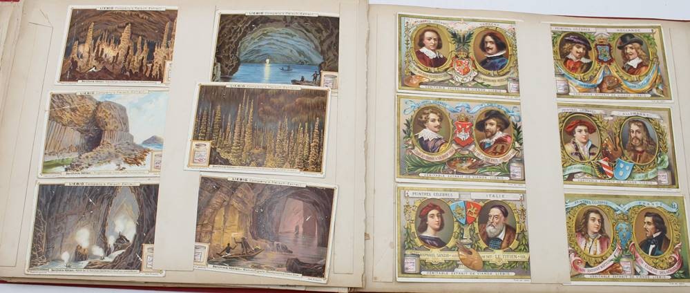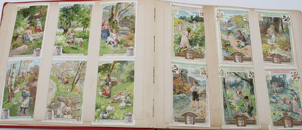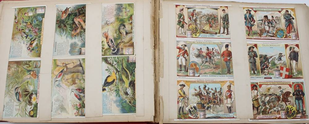 Liebig-Sammelalbum, 19. Jhd., diverse Serien, u.a. Denkmäler, Das Salz, Luftschiffahrt etc. , Seiten lose, Bilder intakt. [1]