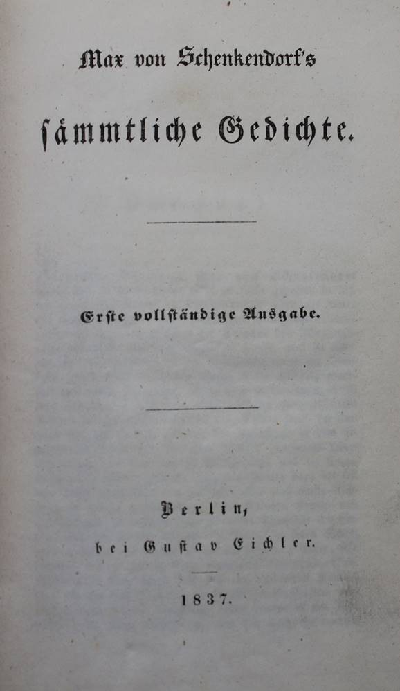 Max von Schenkendorf's sämmtliche Gedichte. (Erste vollständige Ausgabe), 1837