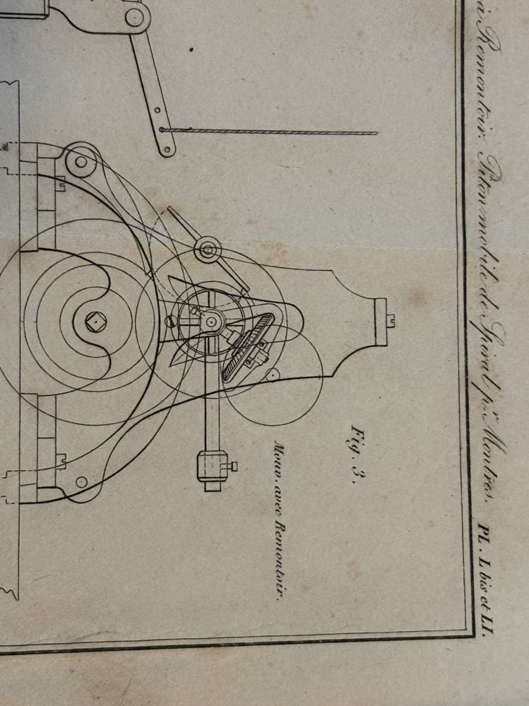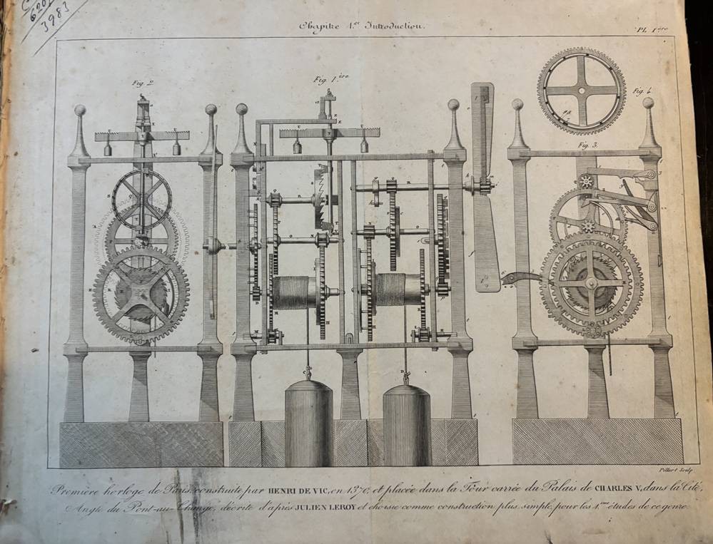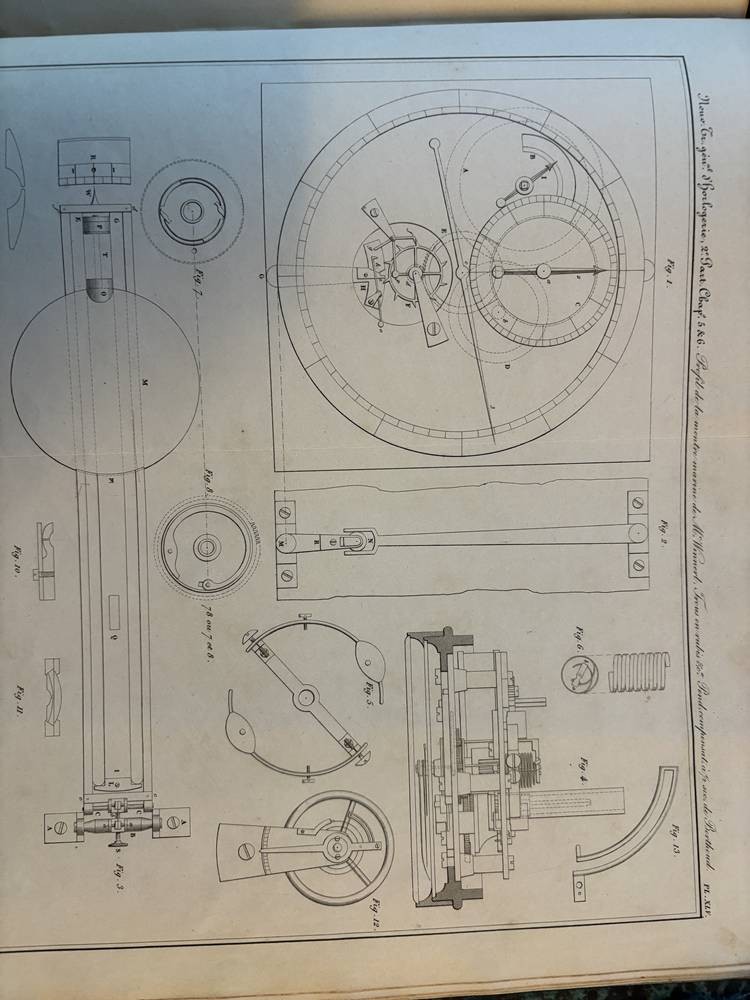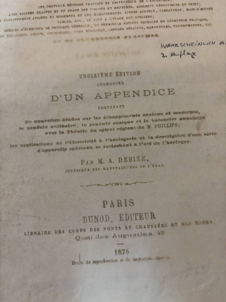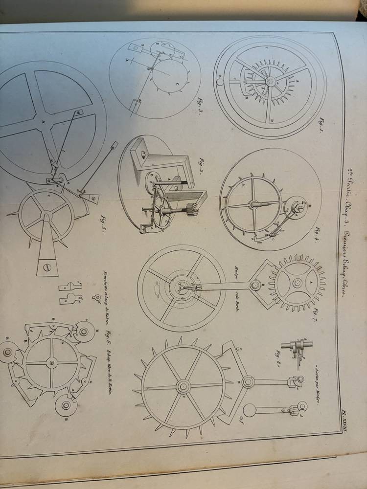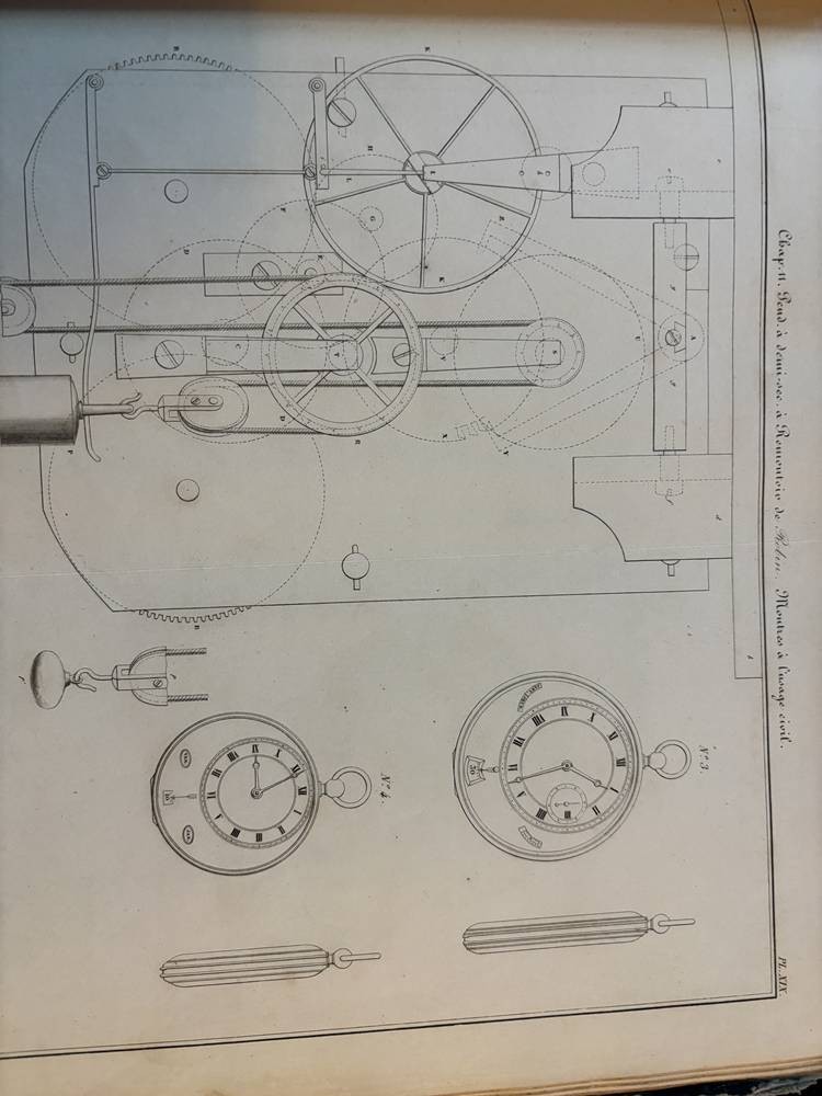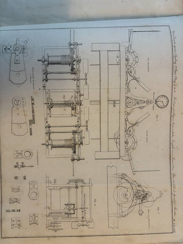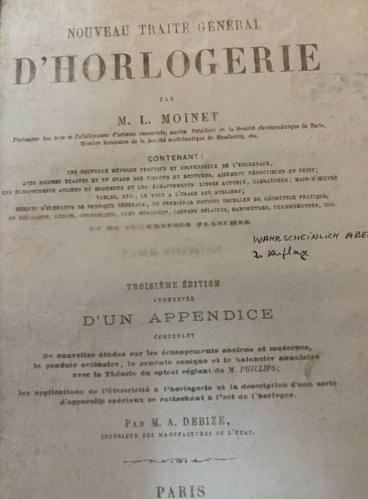 Nouveau Traité Général d'Horlogerie par M.L. Moinet, Paris 1875,mit 101 Tafeln, nur Zeichnungen, wohl Ergänzungsband, Einband beschädigt, 29x25 cm [1]