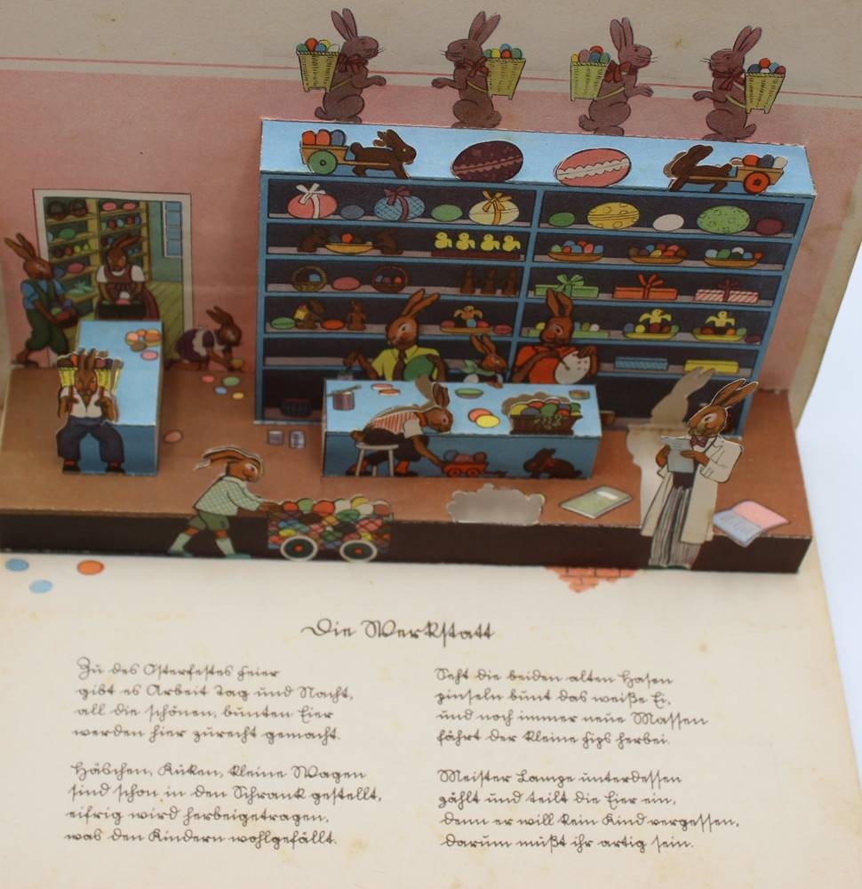 Schreibers Stehauf-Bilderbücher, Von Hasen und Hasenkindern, wohl 40er Jahre, Alters-Gebrauchsspuren [1]