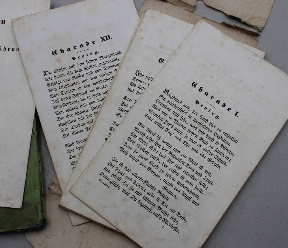 Spielheft aus dem Jahr 1848, Charaden in lebenden Bildern geselliger Aufführung für Kinder, Altersspuren [1]