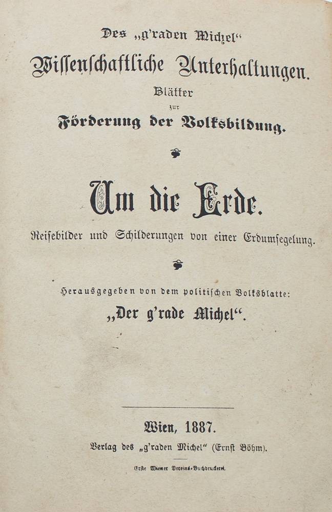Um die Erde - Reisebilder und Schilderungen von einer Erdumsegelung, Wien 1887, Alters-u. Gebruchsspuren [1]