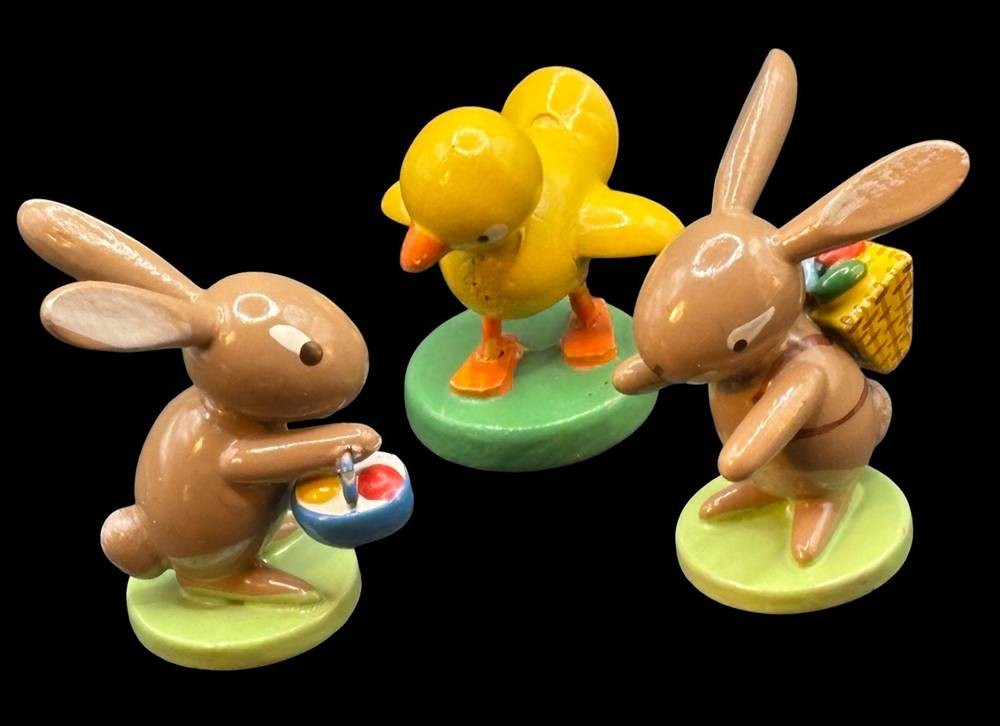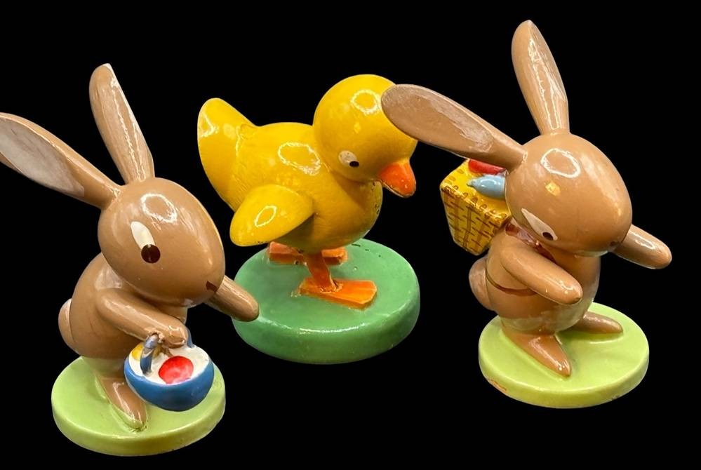 2 Osterhasen, 1 Küken, Erzgebirge, H-max. ca. 4,5 cm [1]