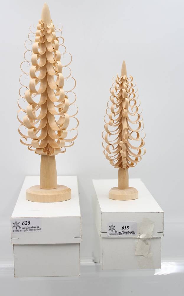 2x gr. Spanbäume, Erzgebirge, je in orig, Karton, 18 bis 25cm [1]