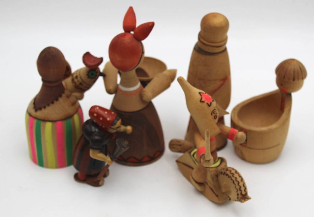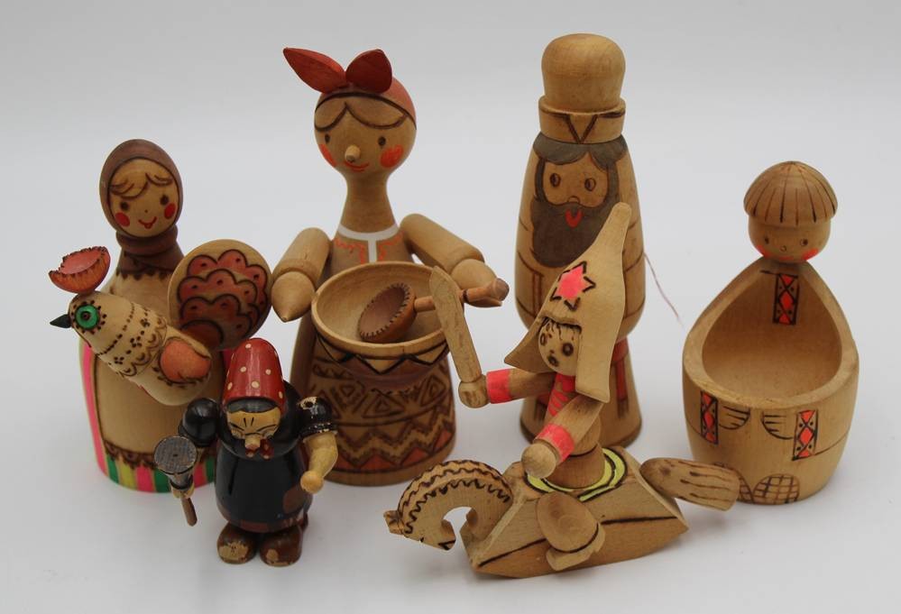 6x div. russische Holzfiguren, tw, auch Brandmalerei, 7 bis 13 cm [1]