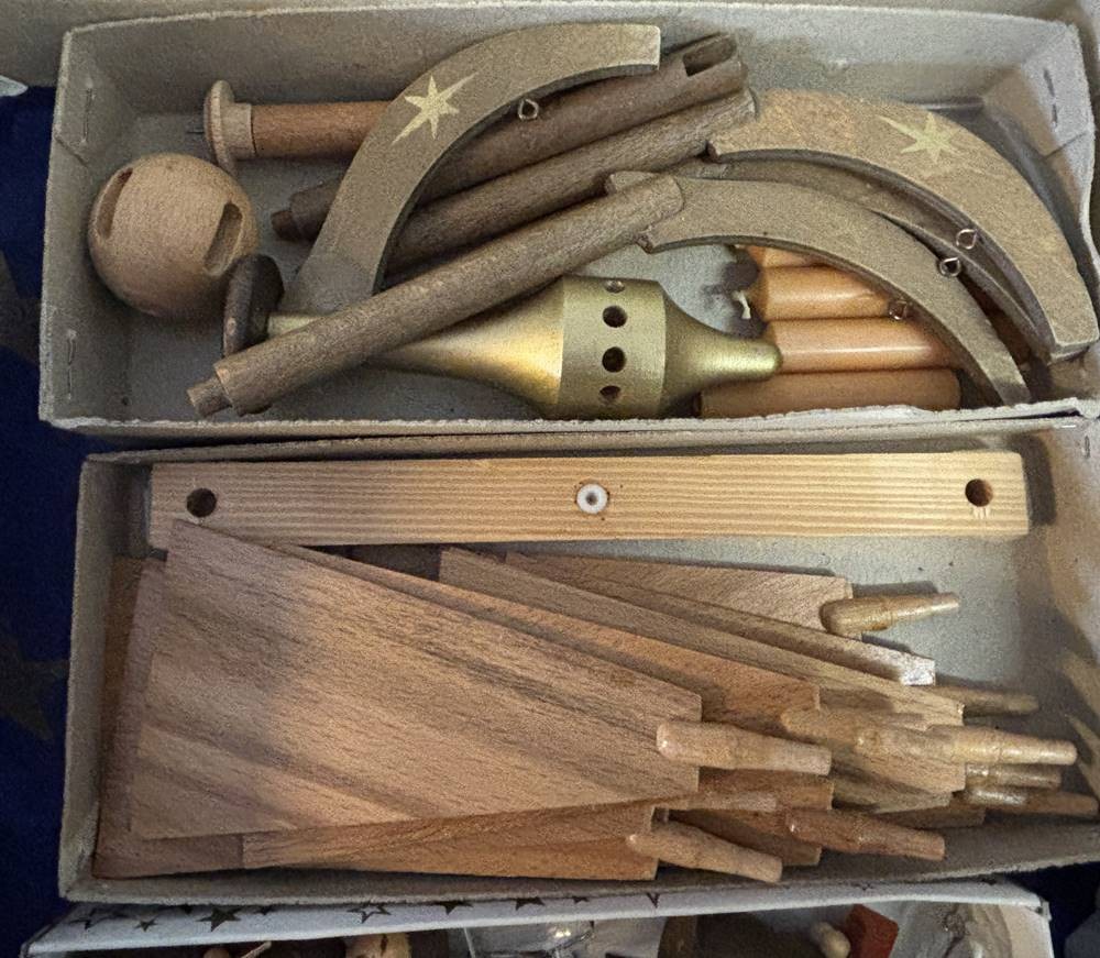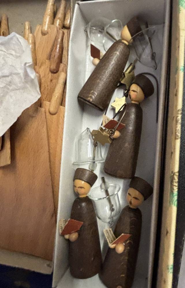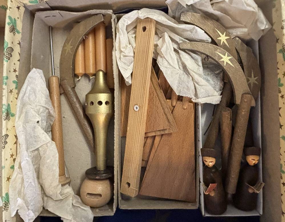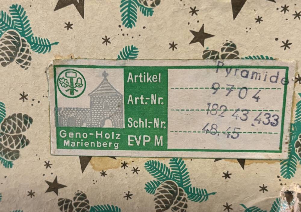 einstöckige Erzgebirge Pyramide in OVP, DDR um 1960, Modell Nr. 9704, mit 4 Kurrende Sänger, Vollständigkeit nicht überprüft [1]