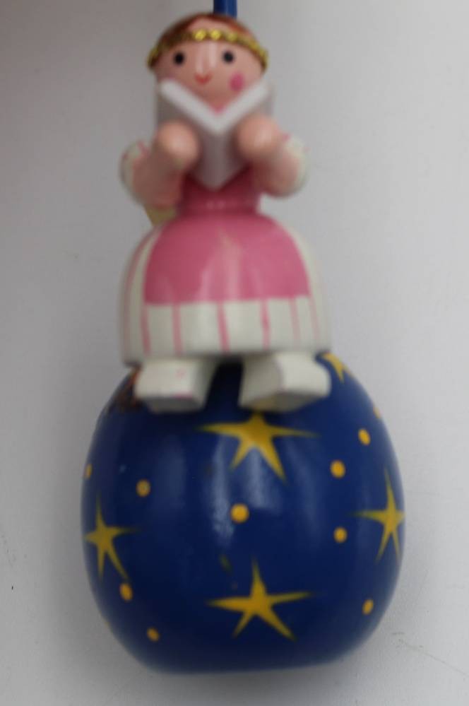 Erzgebirge Kerzenständer mit Weihnachtsengel auf Kugel, bemalt mit Sternen, H-18 cm [1]
