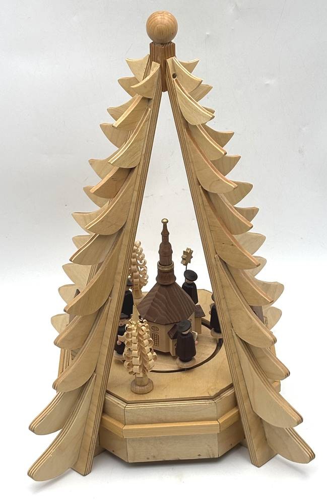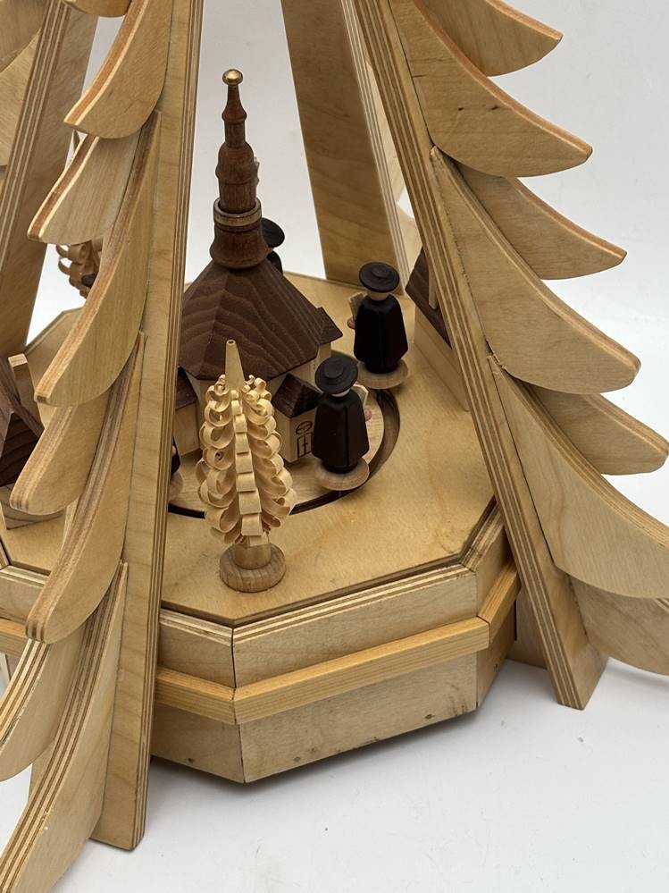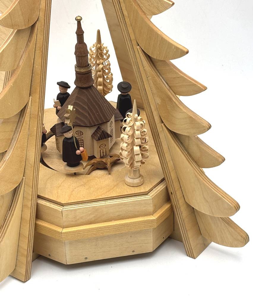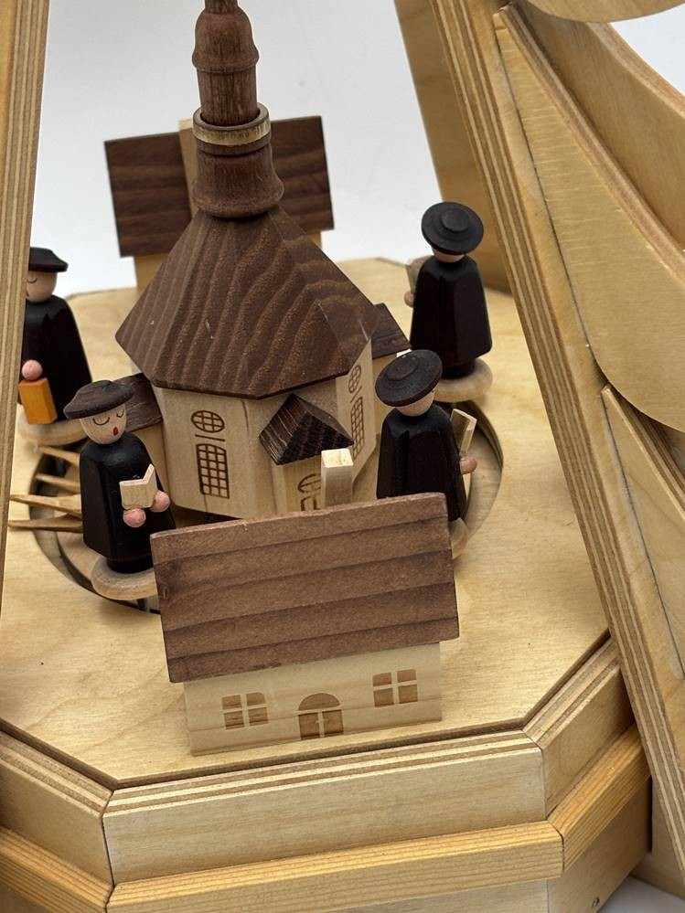 Erzgebirge Spieluhr, Pyramidenform mit Kurrende und Gebäude, Werk läuft, H-40 cm, D-24 cm [1]