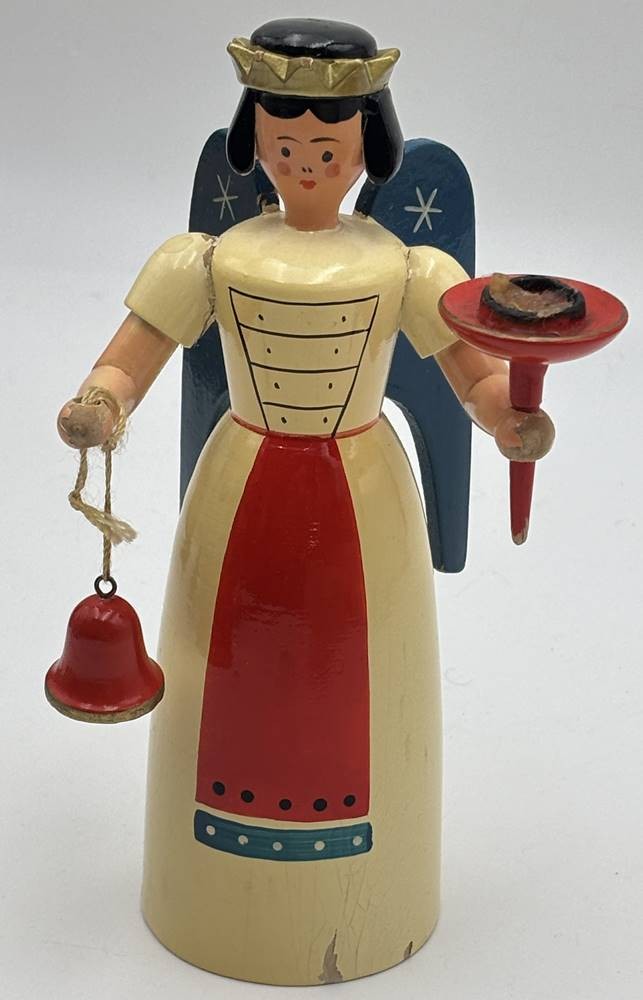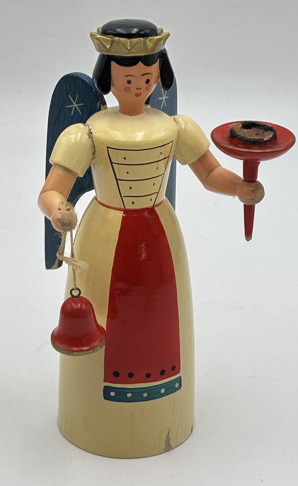 gr. Erzgebirge Engel, Kerzenhalter und Glocke, H-18 cm [1]